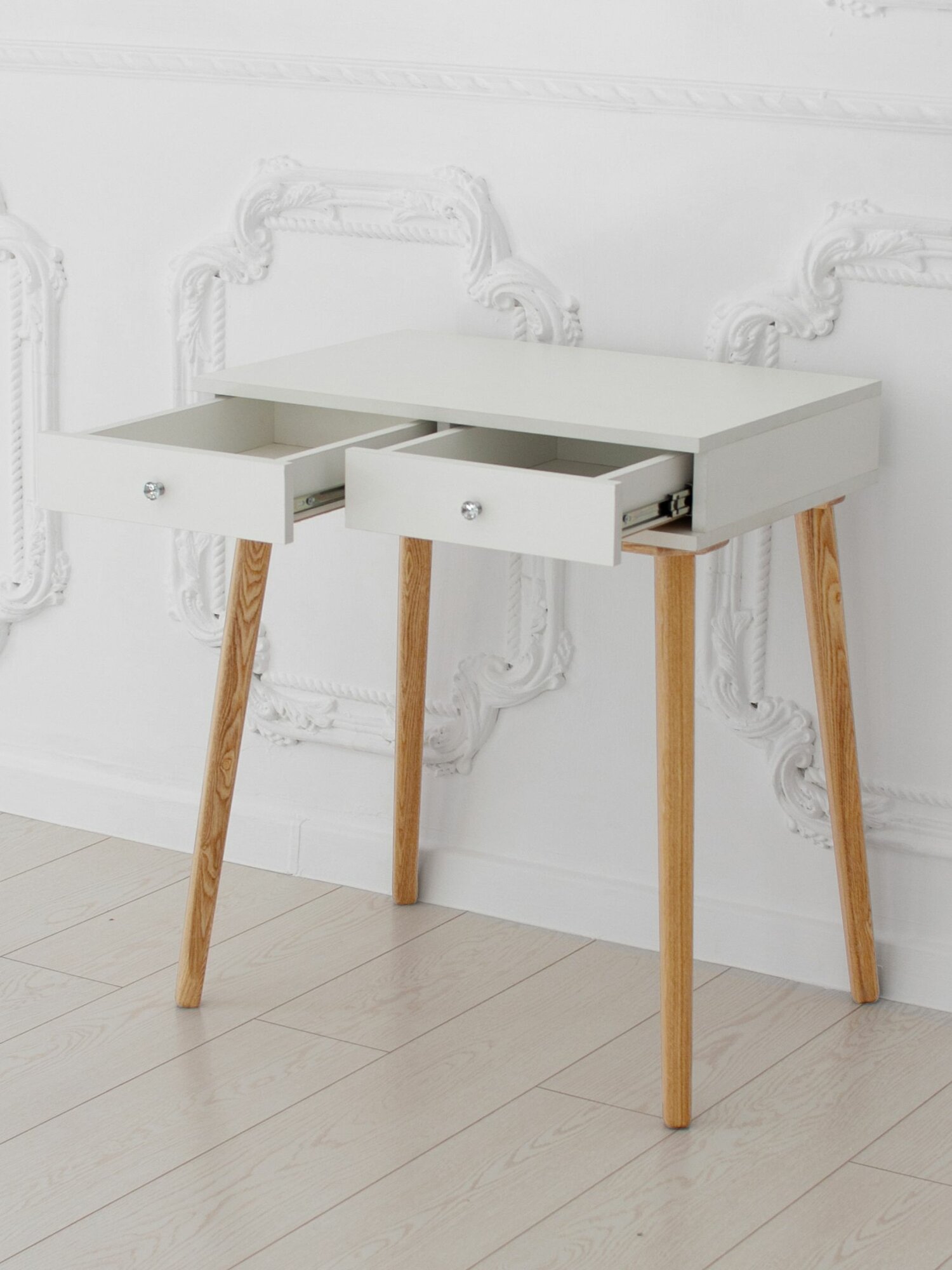 Гримерный столик с ящиком White+Votan на ножках из массива в цвете прозрачное масло