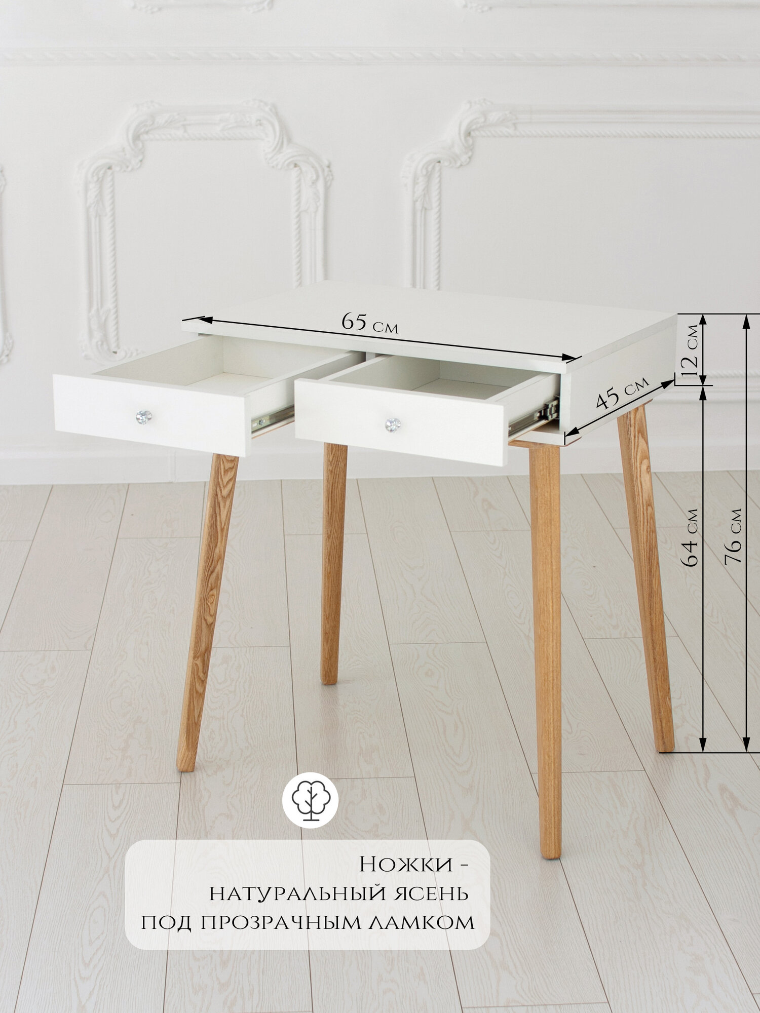 СохранитьТуалетный столик с ящиком White на ножках из массива в цвете прозрачное масло интересное: