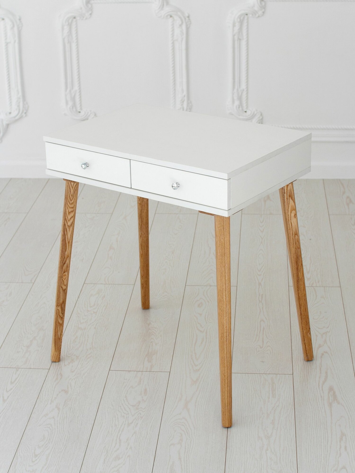 Гримерный столик с ящиком White на ножках из массива в цвете прозрачное масло