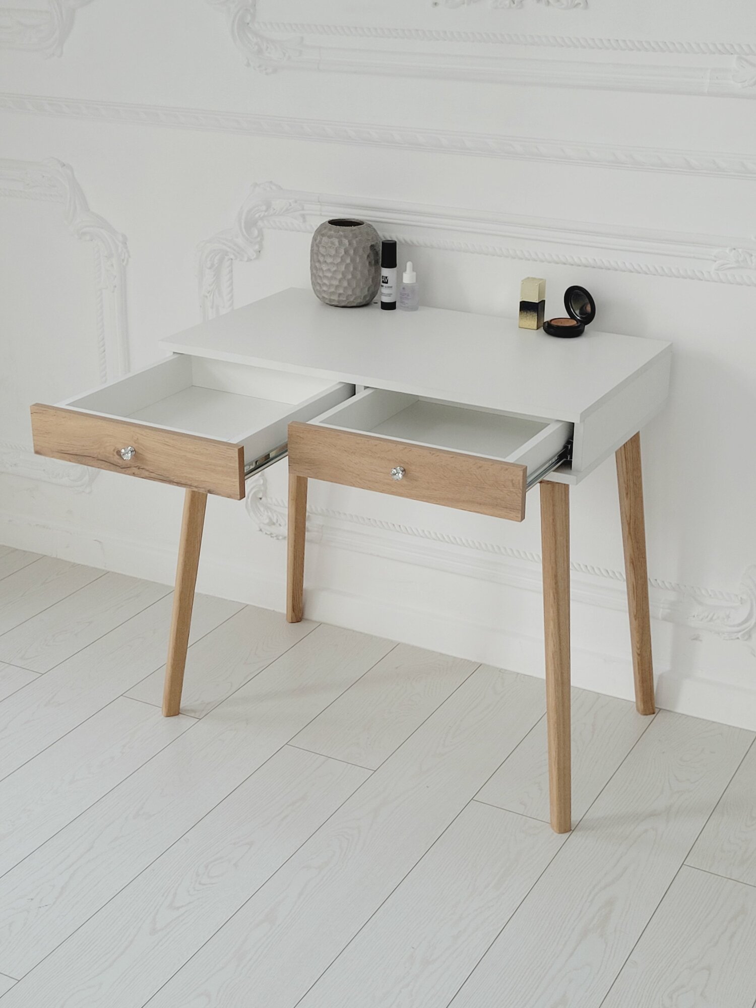 Туалетный столик с ящиком White на ножках из массива в цвете прозрачное масло