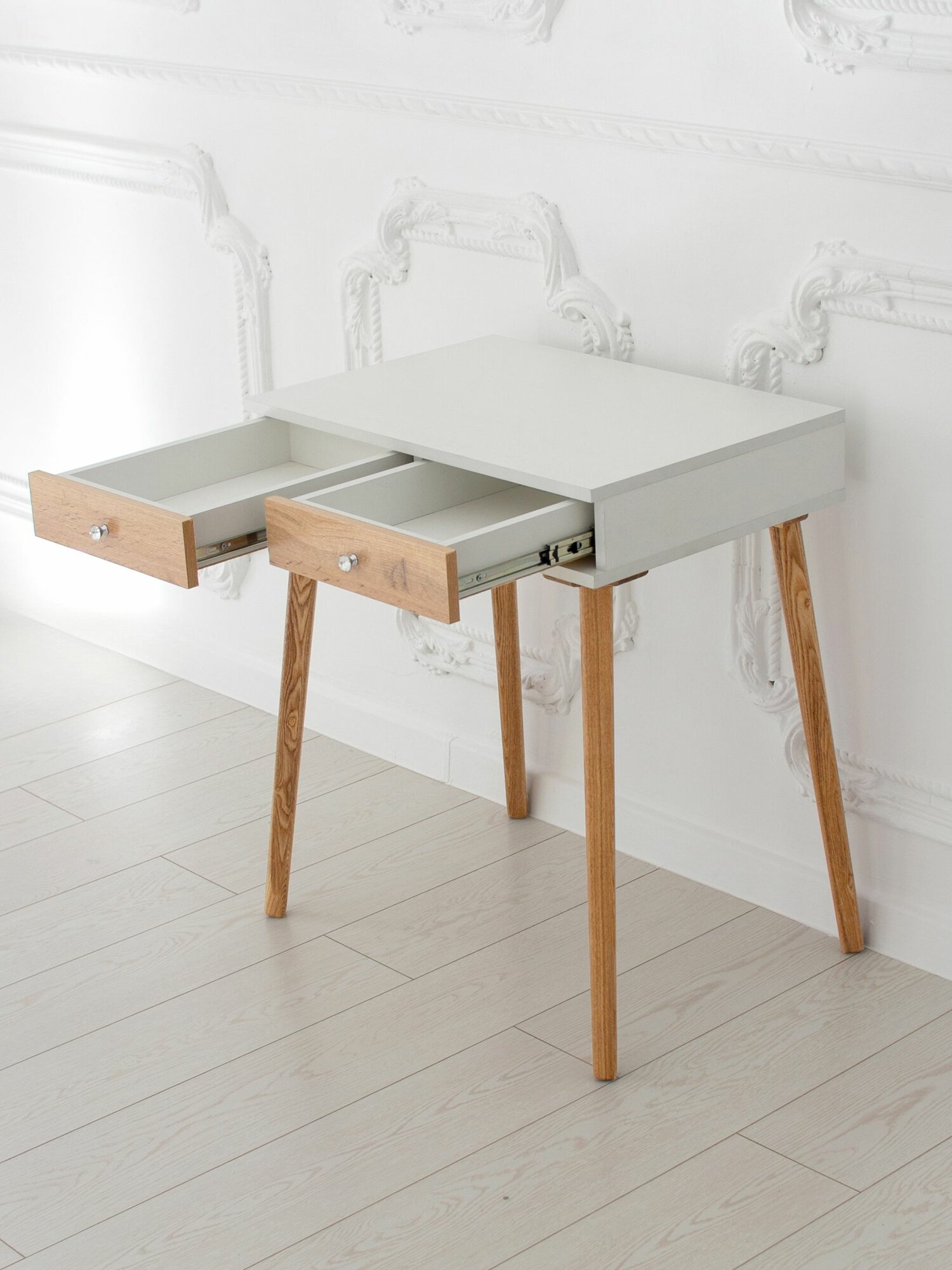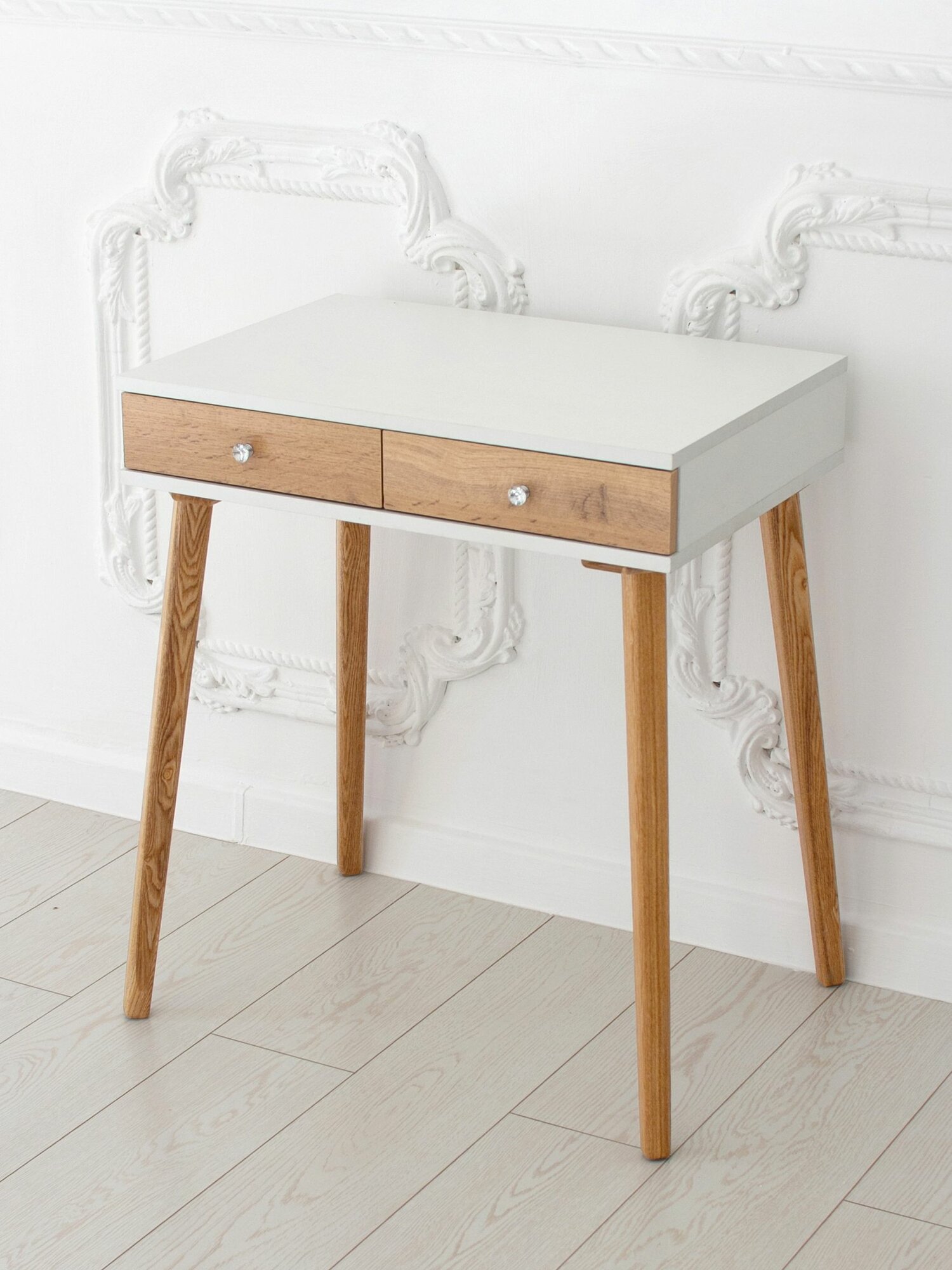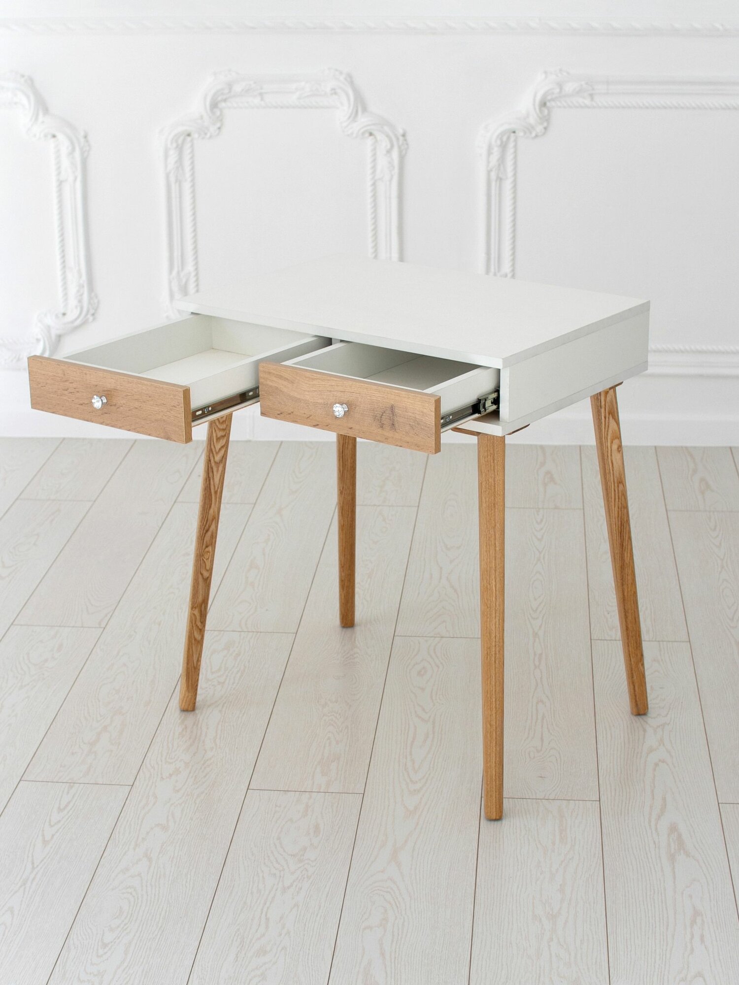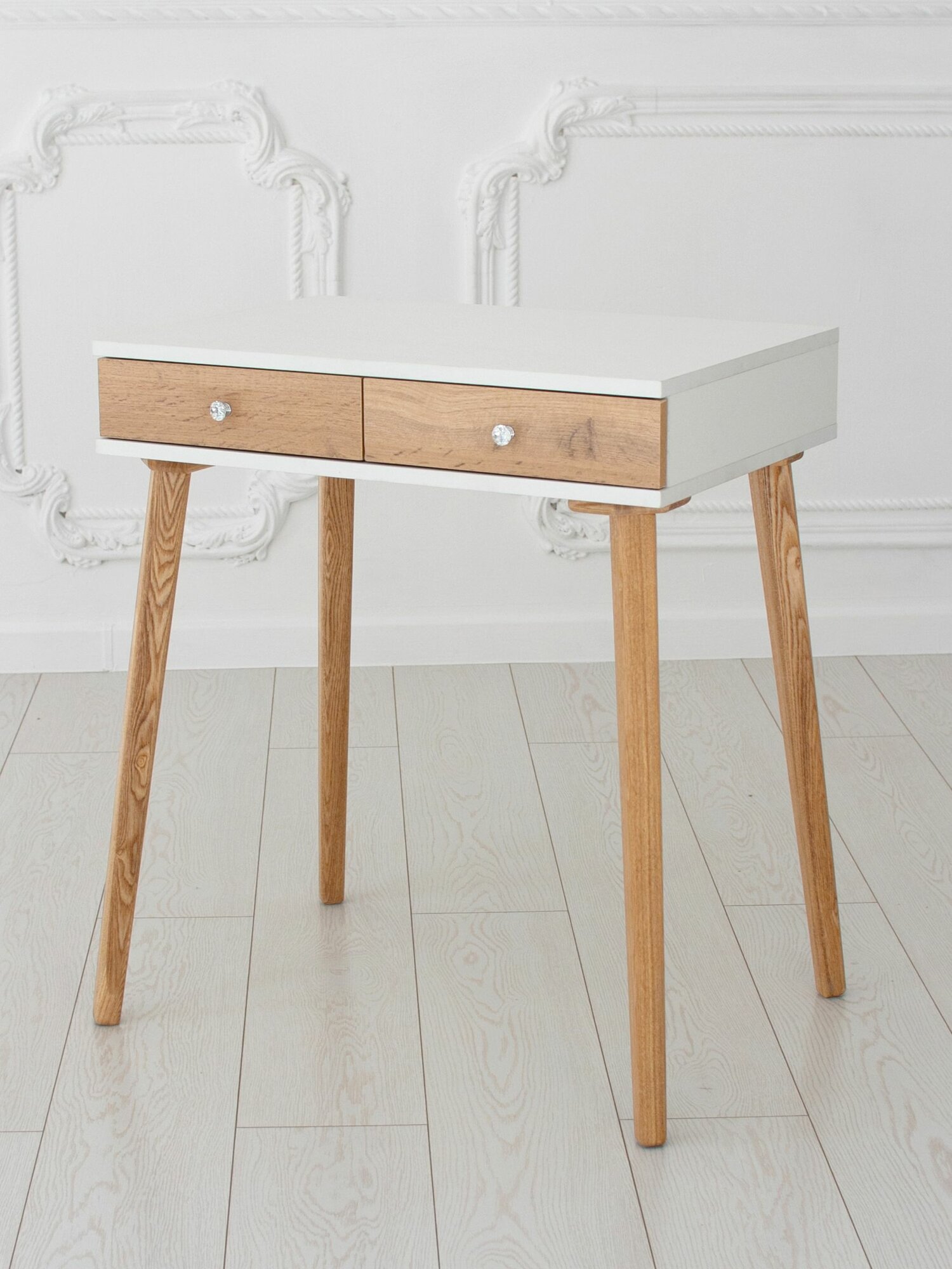 Туалетный столик с ящиком White на ножках из массива в цвете прозрачное масло