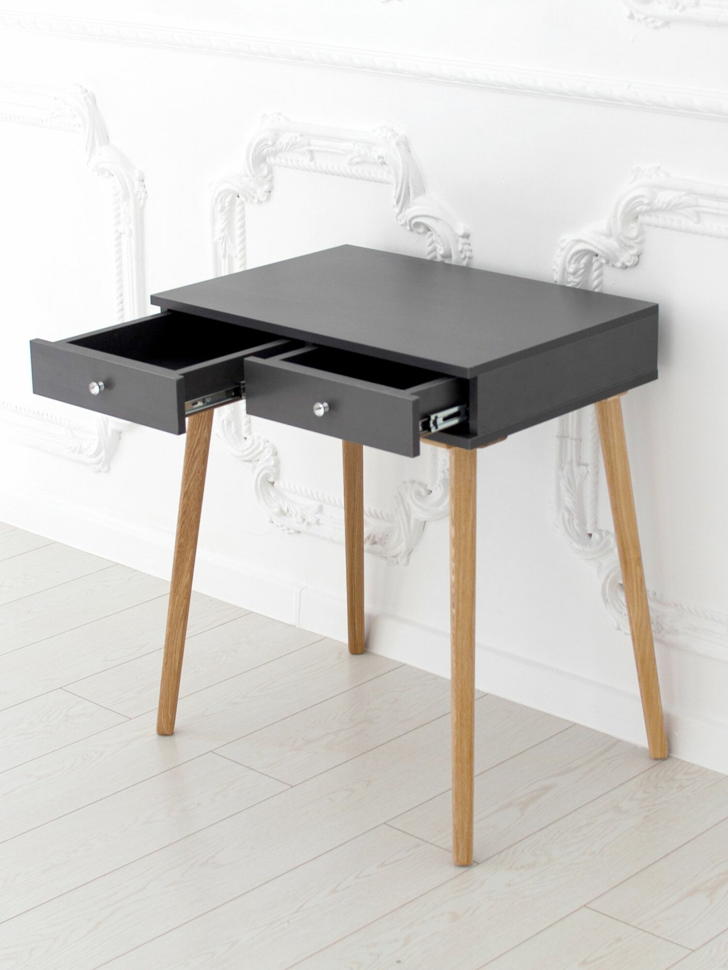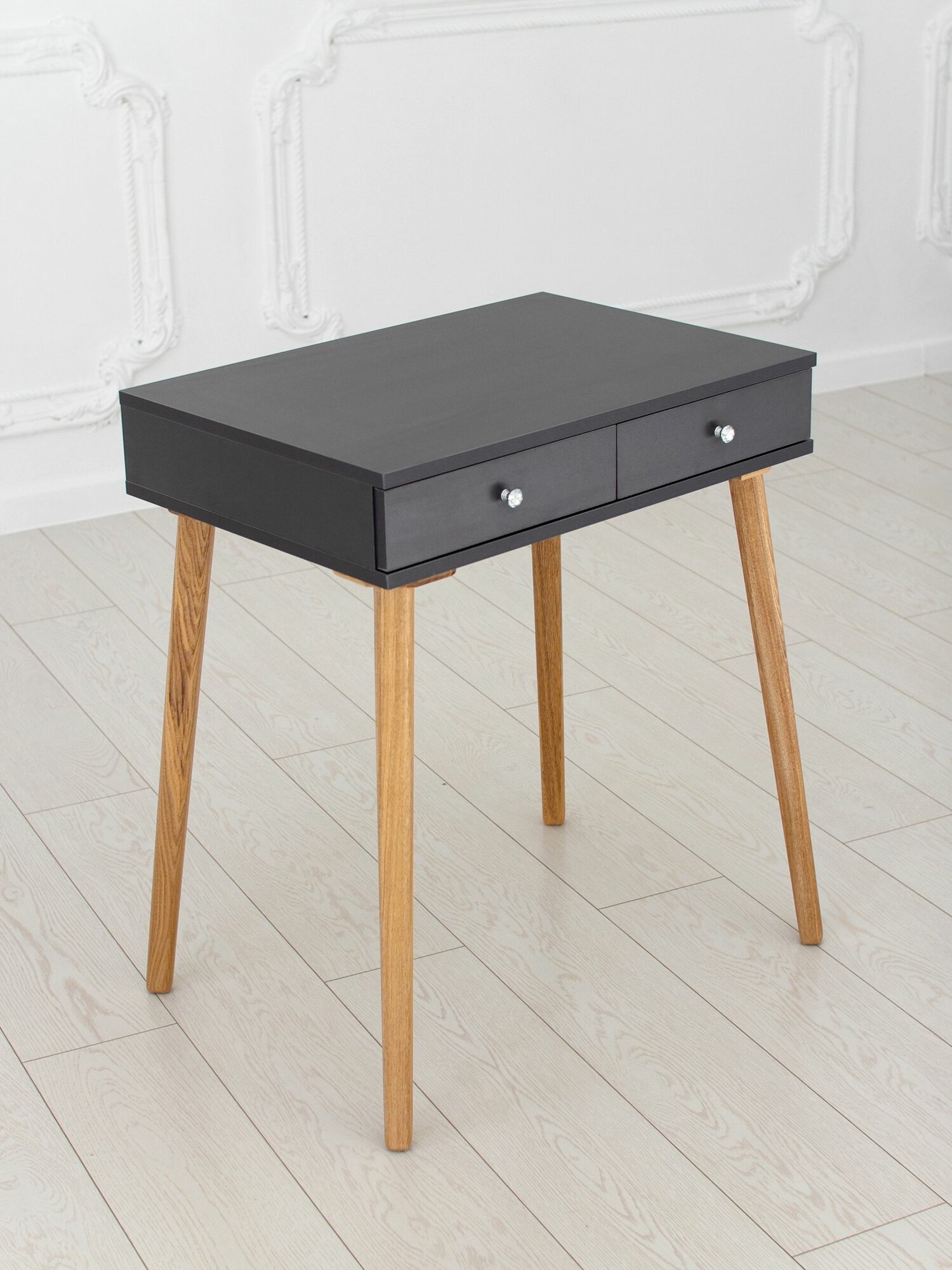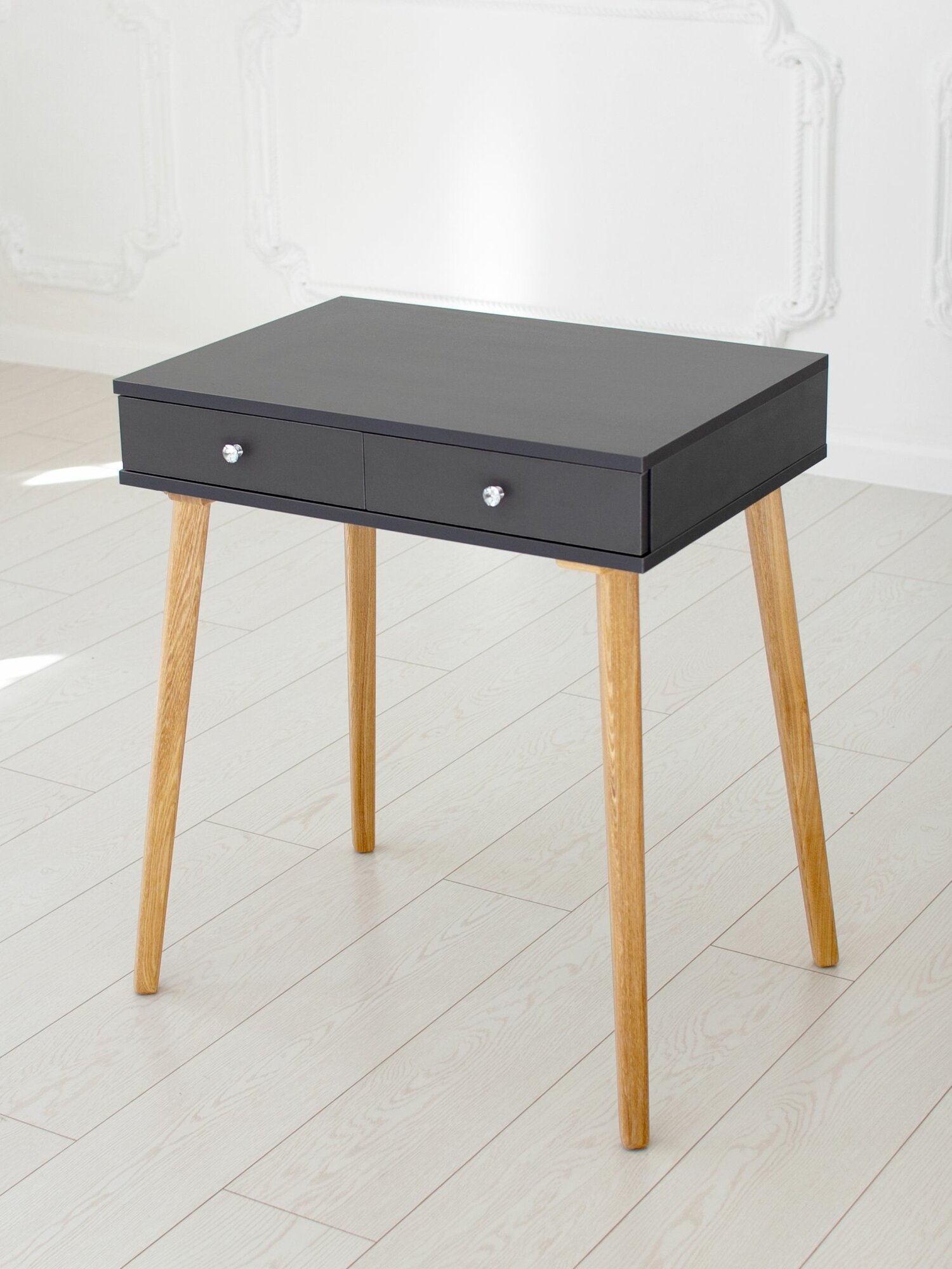 СохранитьТуалетный столик с ящиком Grapfit на ножках из массива в цвете прозрачное масло интересное: