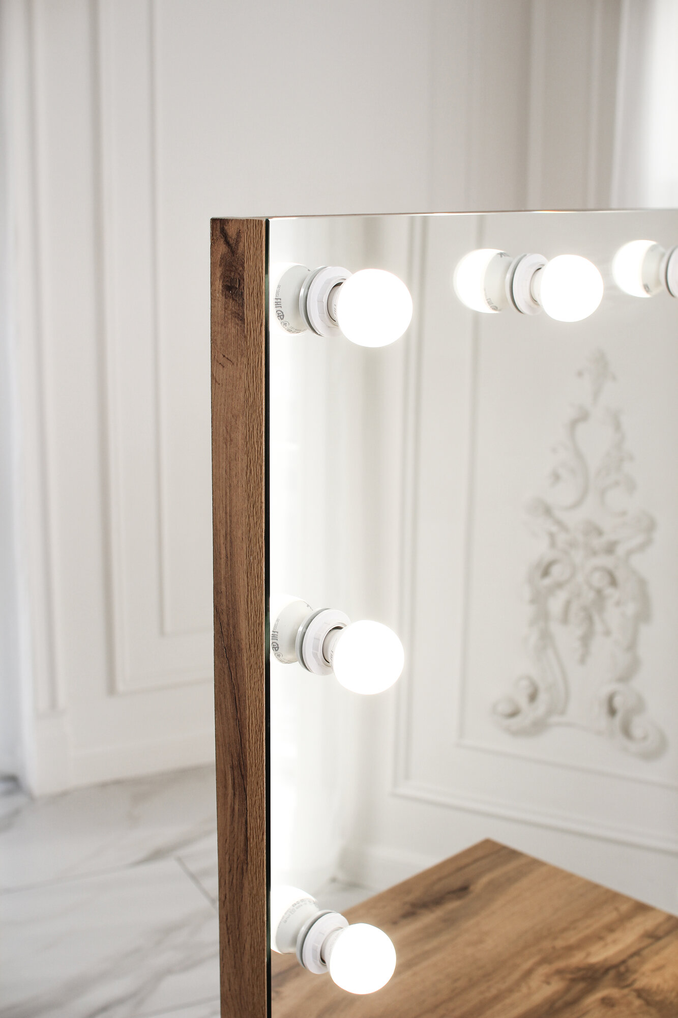 Туалетный столик с ящиком и зеркалом с LED подсветкой, на глухих ножках белый