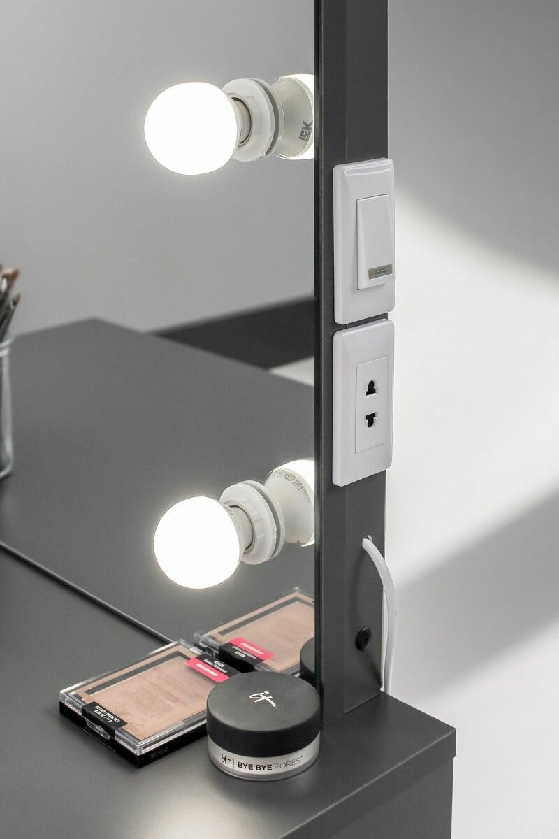 Туалетный столик с ящиком и зеркалом с LED подсветкой, на глухих ножках графит