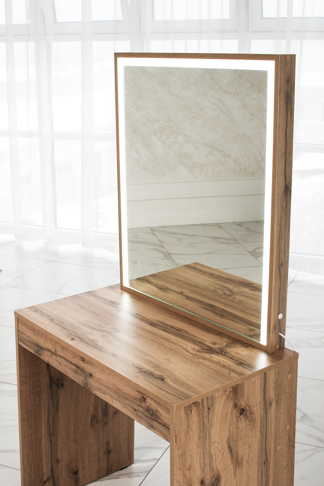 Купить Туалетный столик с ящиком и зеркалом с LED подсветкой, на глухих ножках ДУБ вотан