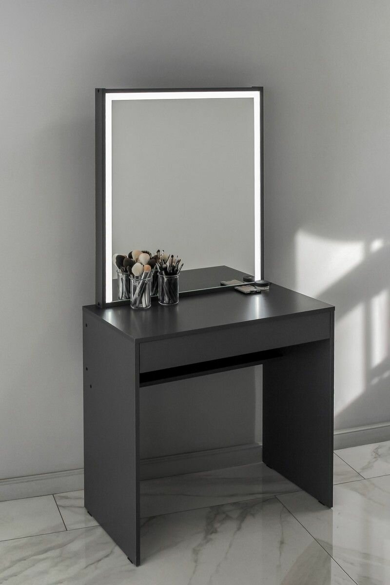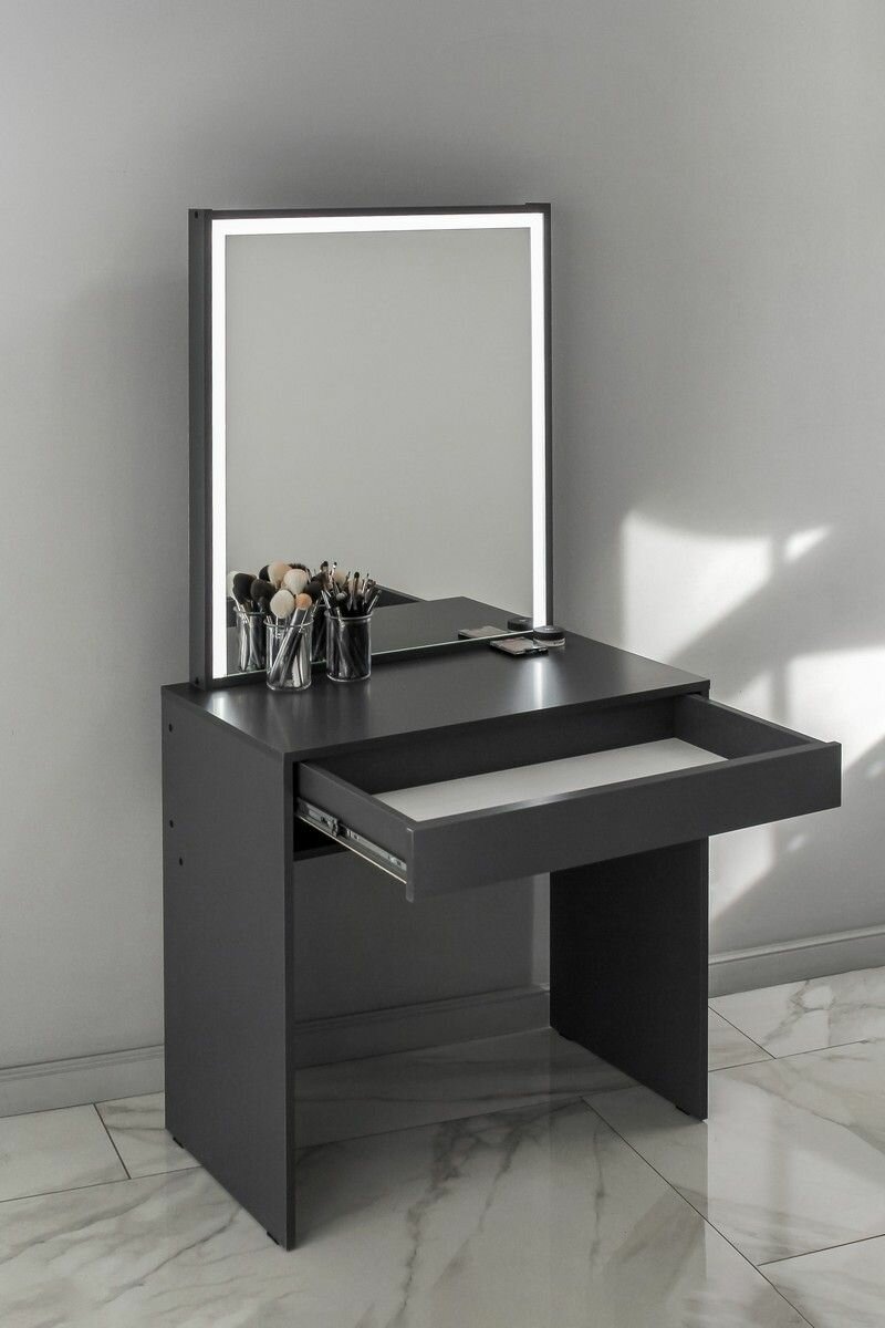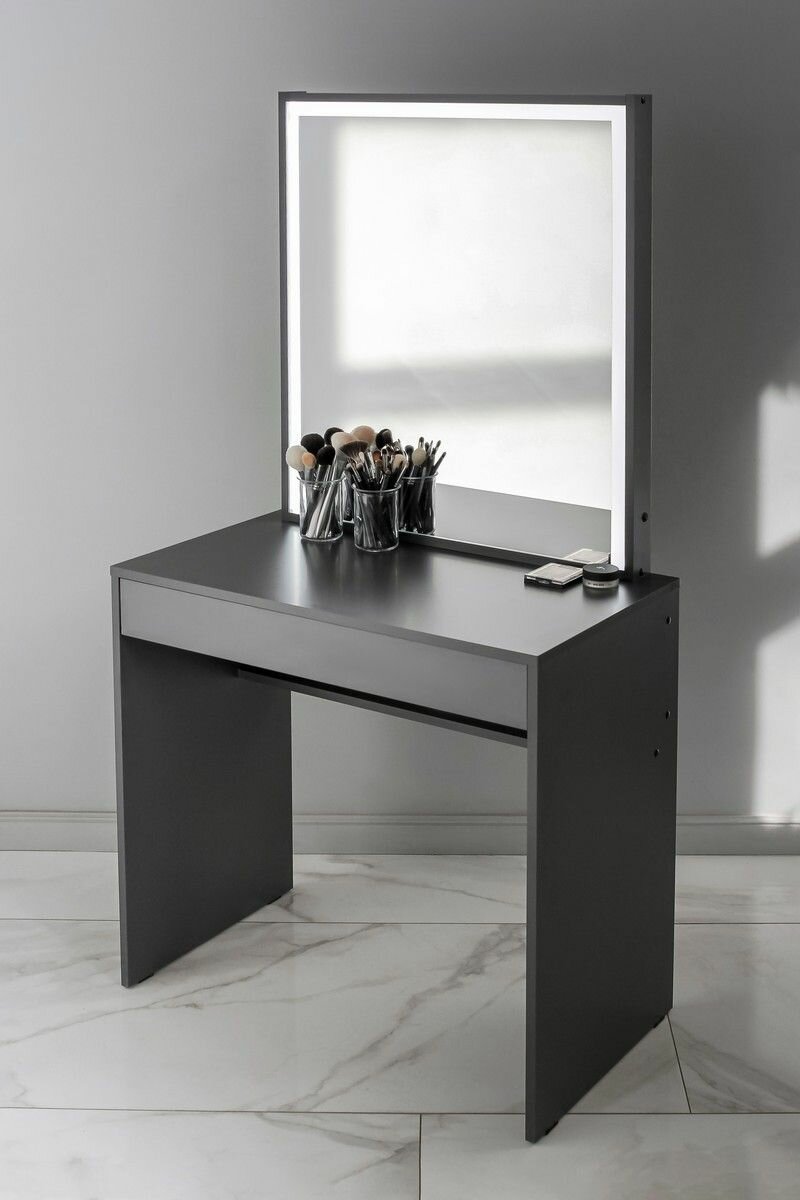 Купить Туалетный столик с ящиком и зеркалом с LED подсветкой, на глухих ножках графит