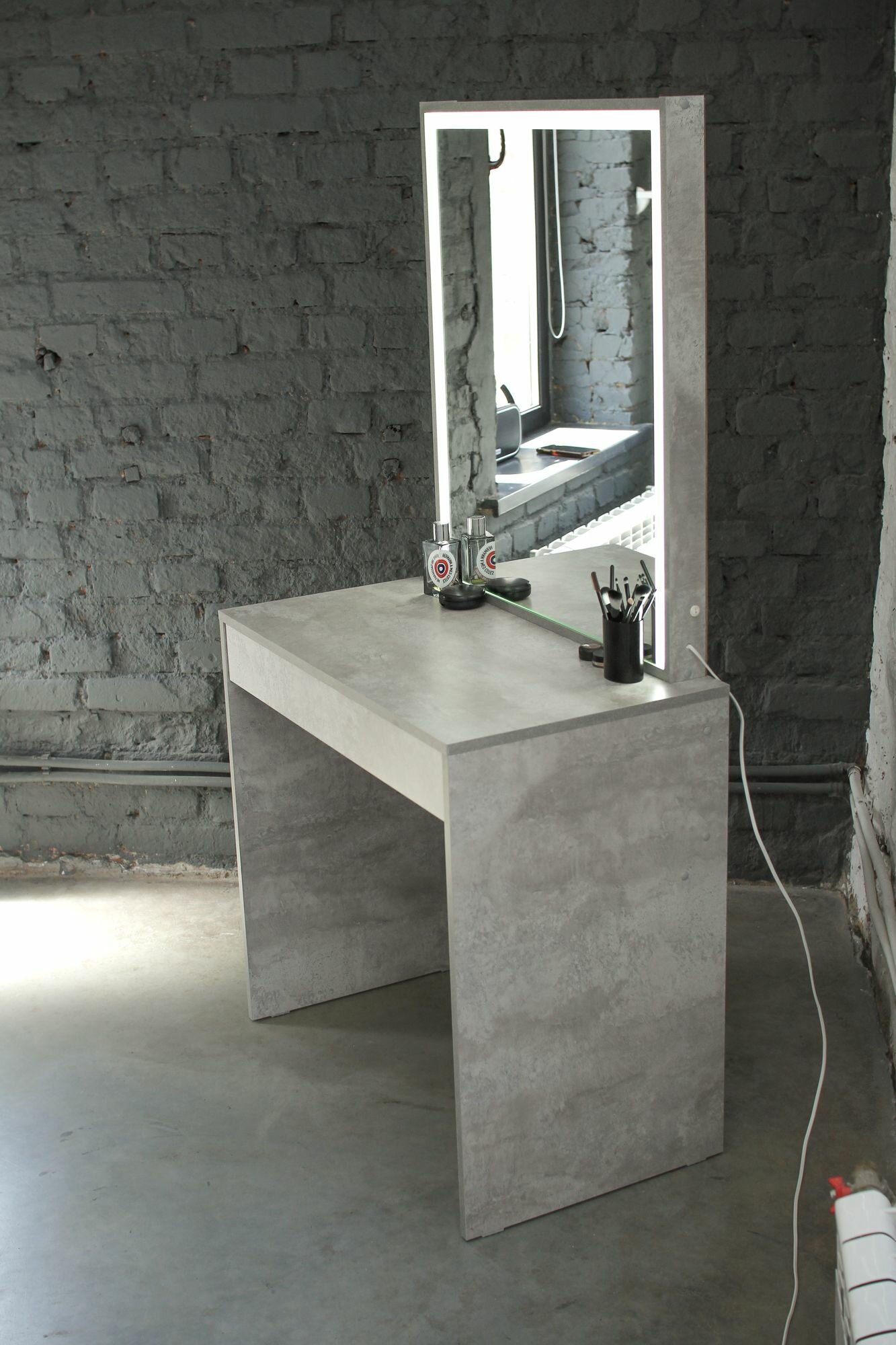 Купить Туалетный столик с ящиком и зеркалом с LED подсветкой, на глухих ножках цемент