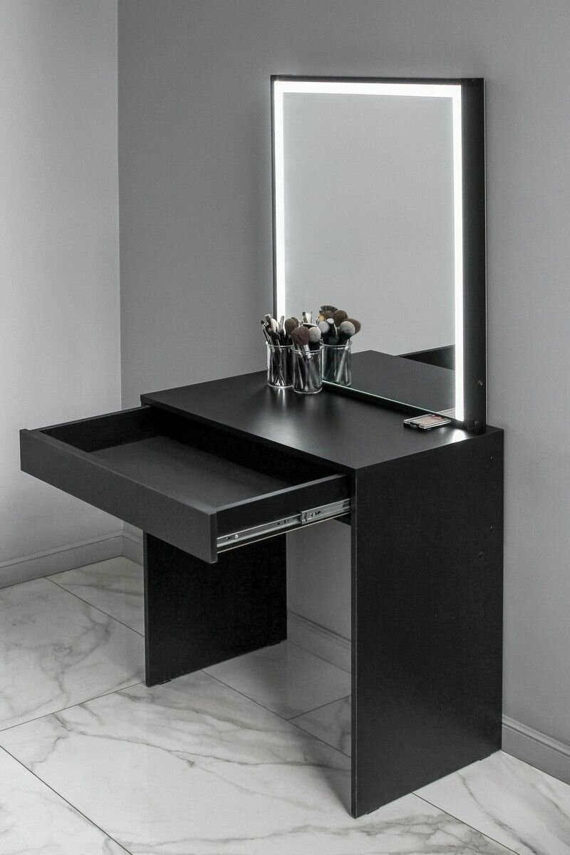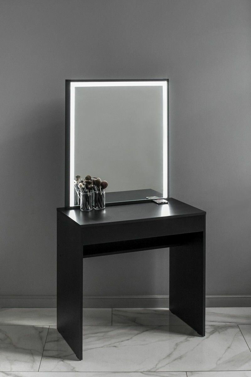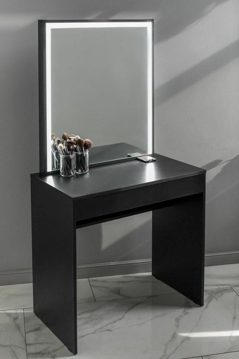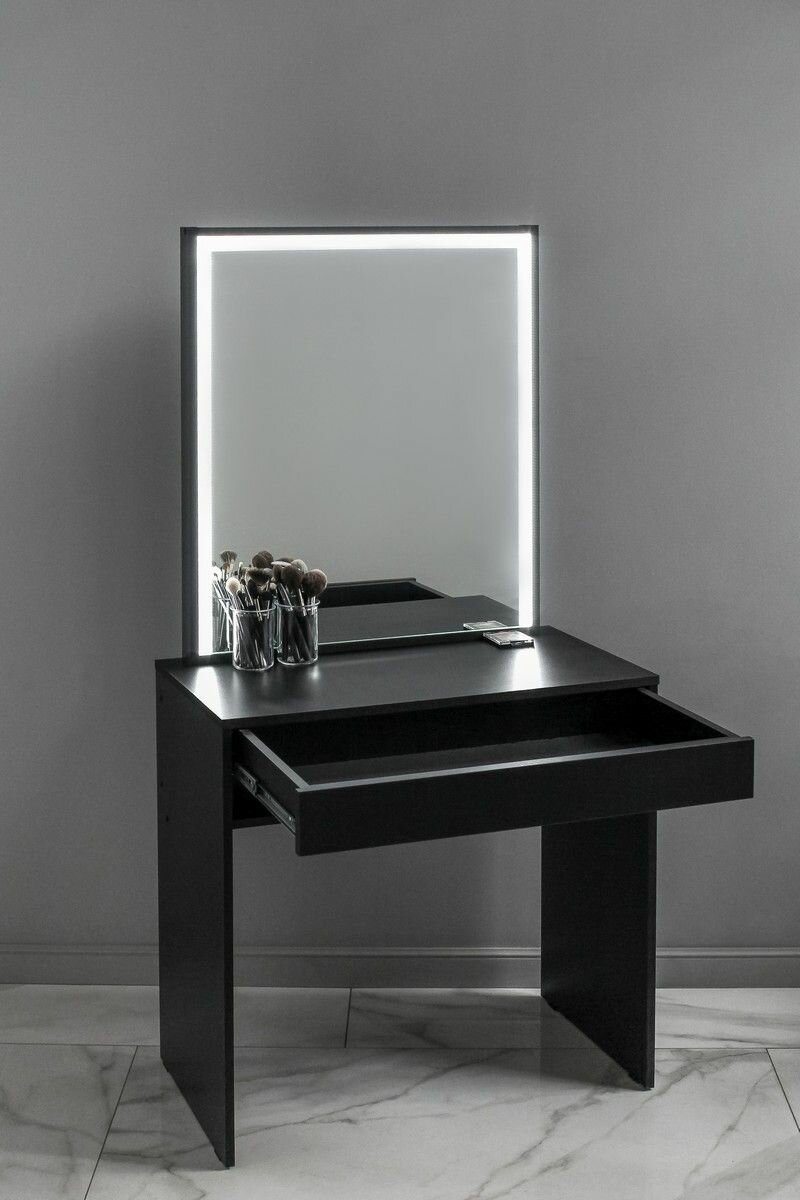 Купить Туалетный столик с ящиком и зеркалом с LED подсветкой, на глухих ножках черный