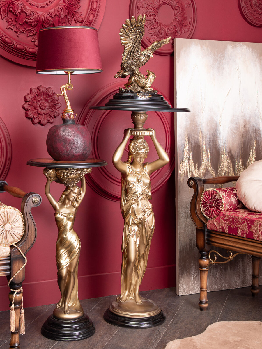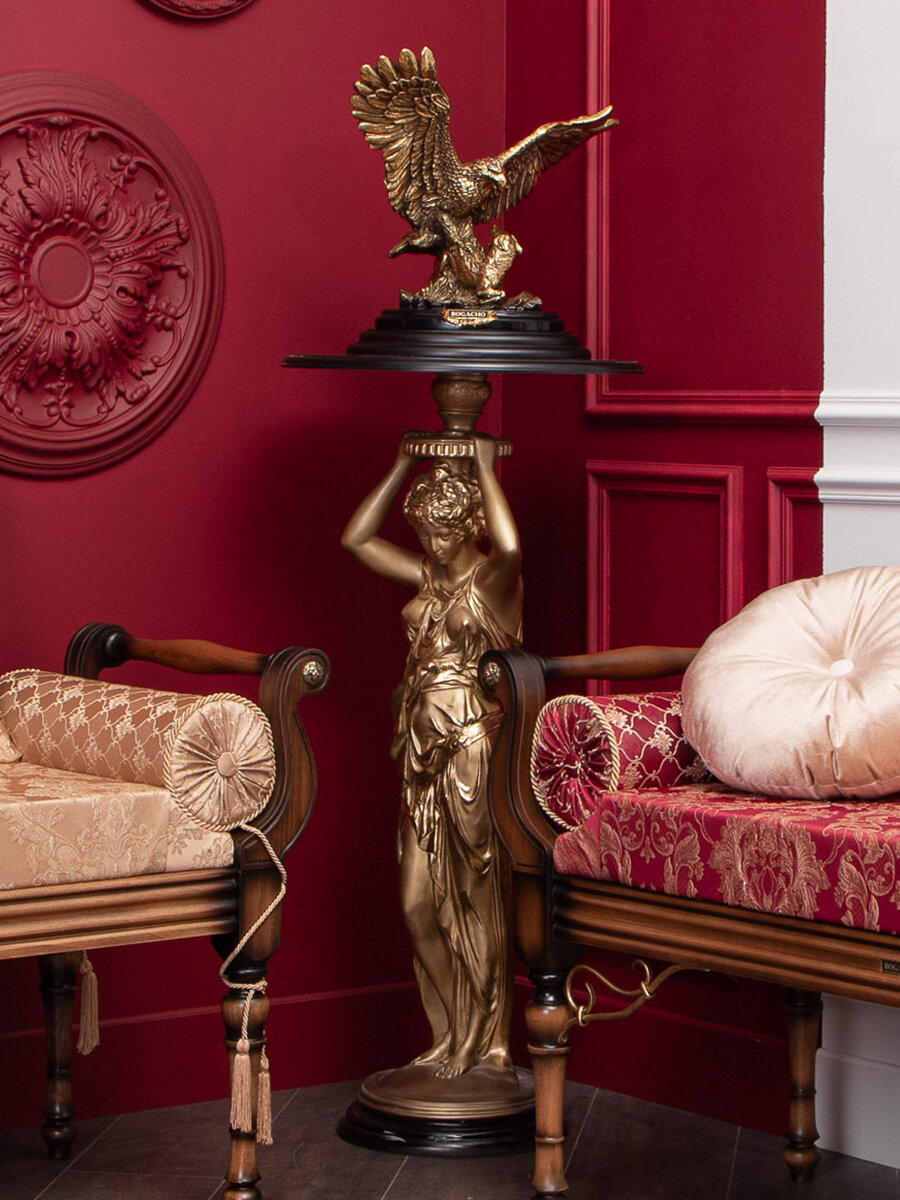 Подставка из литьевого мрамора BOGACHO Гречанка бронзовая со столешницей диаметром 45 сантиметров коричневой интересное: