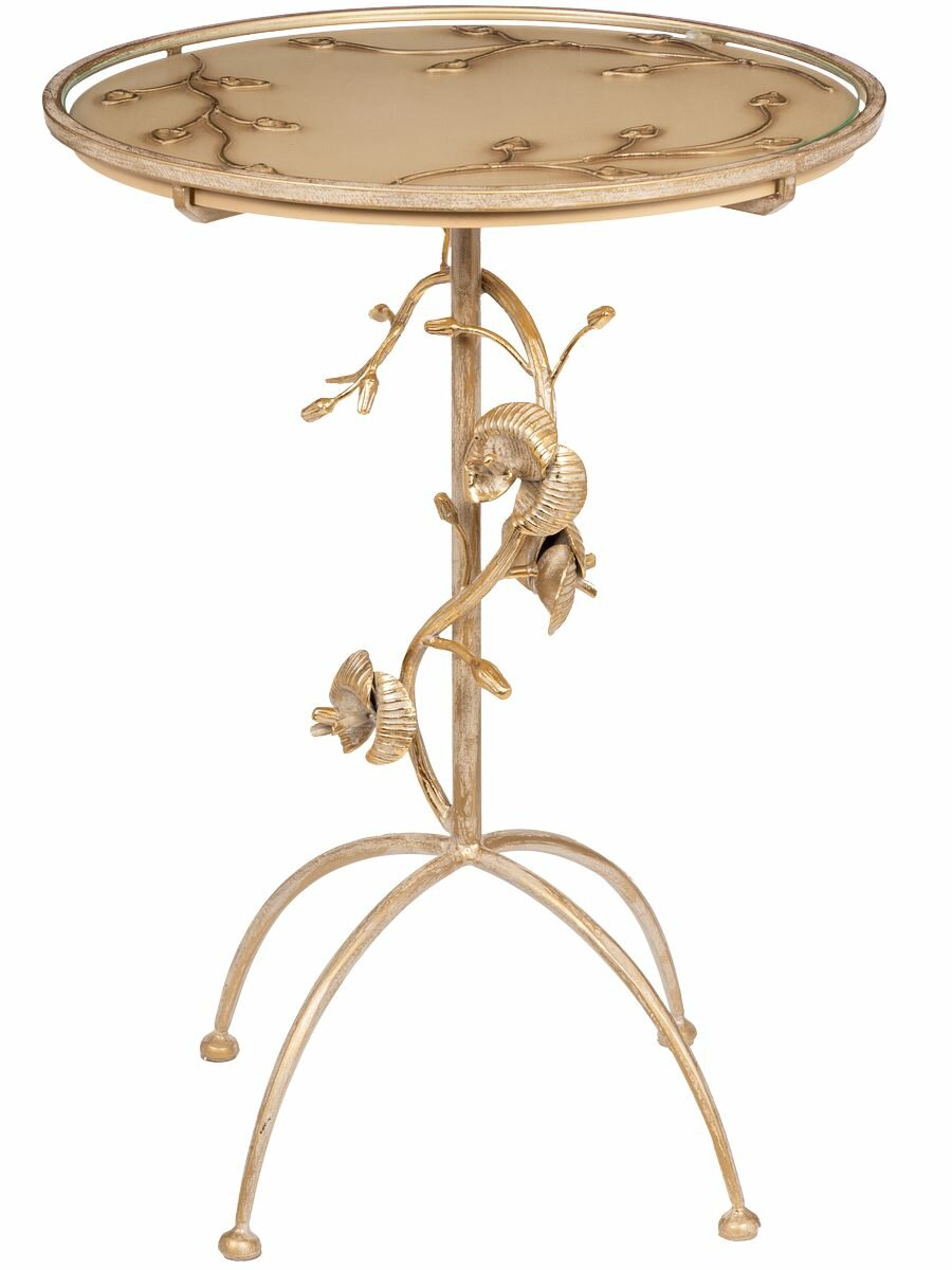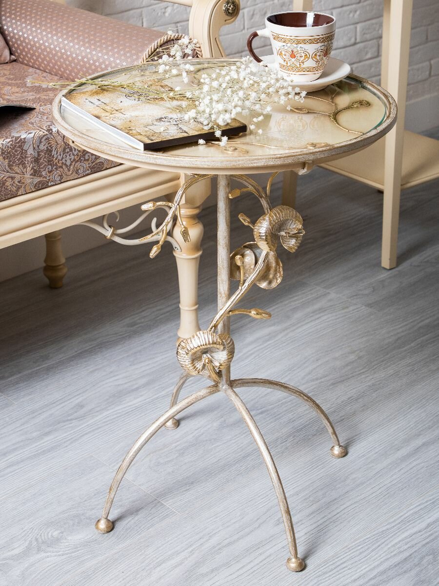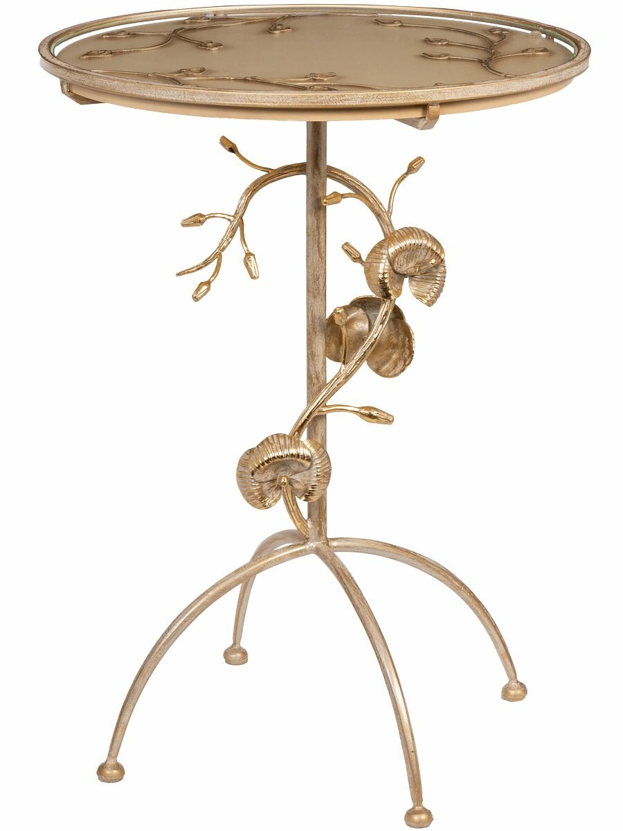 Купить Кофейный круглый столик Bogacho Орхидея Фиори со стеклянной столешницей и фигурной металлической ножкой с цветами