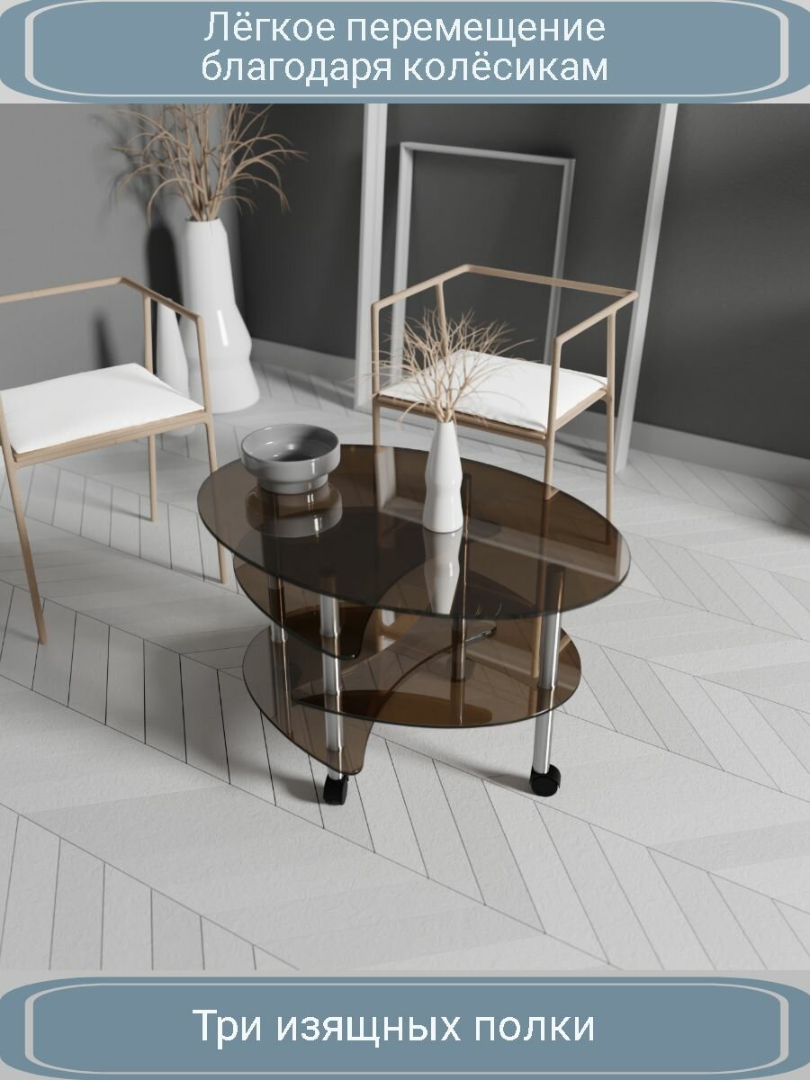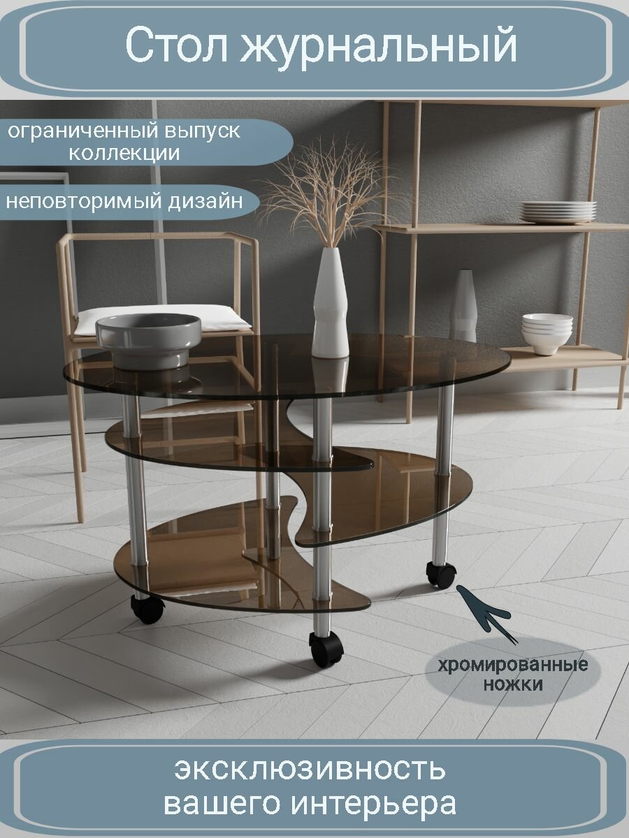 Стол стеклянный журнальный Рио (тонированный, ноги хром)/Стол журнальный стеклянный круглый / 90*60*52 см интересное: