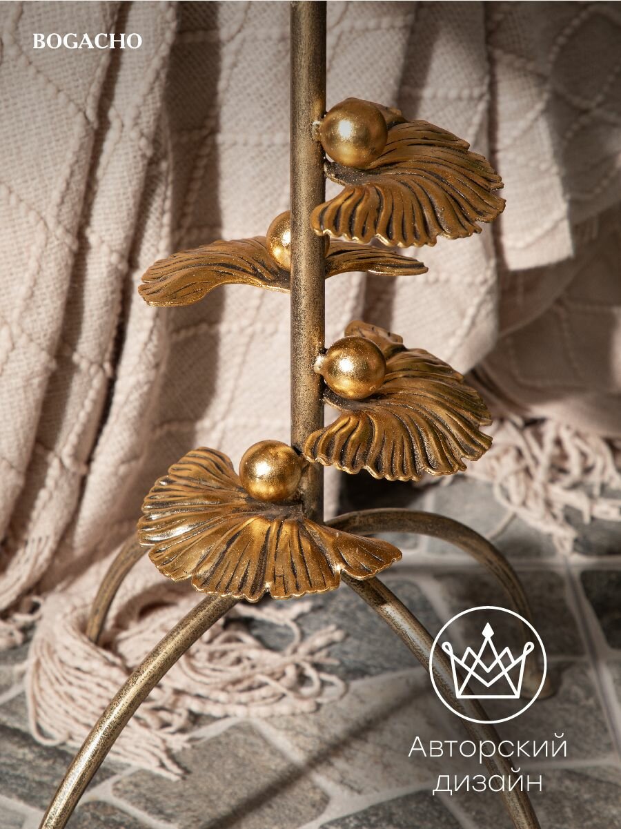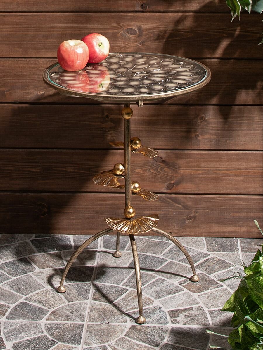 Кофейный круглый столик Bogacho Терра Роуз со стеклянной столешницей и фигурной металлической ножкой с лепестками интересное: