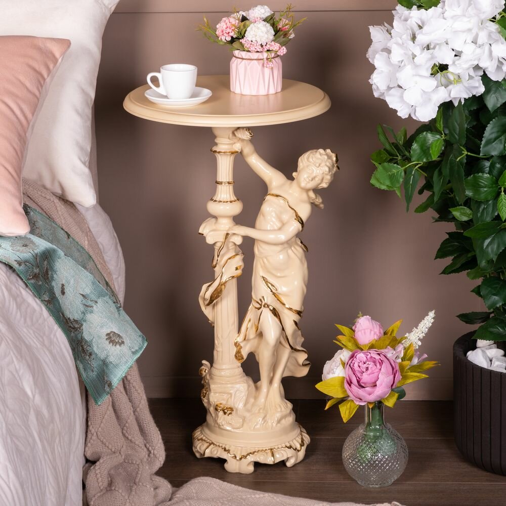 Декоративная подставка BOGACHO Летний вечер бежевая со столешницей диаметром 34 сантиметров бежевой интересное: