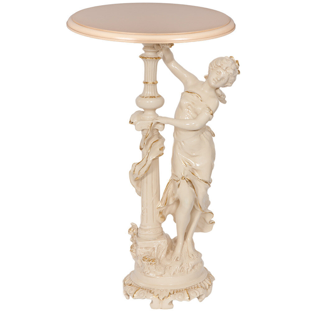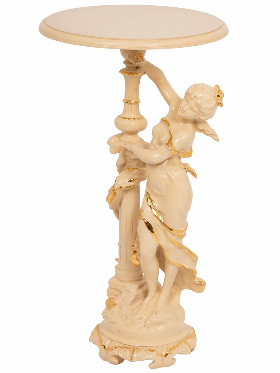 Купить Декоративная подставка BOGACHO Летний вечер бежевая со столешницей диаметром 34 сантиметров бежевой