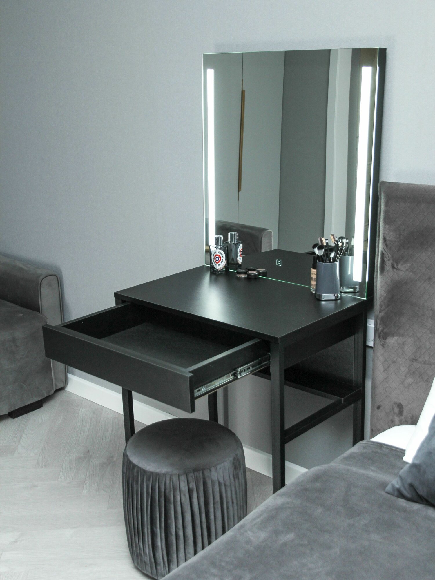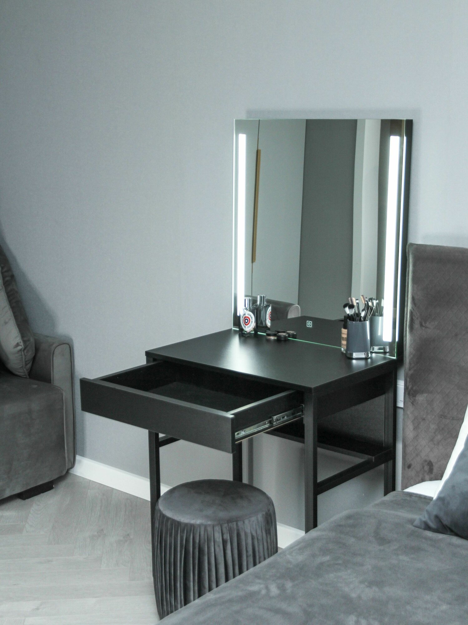 Туалетный столик с ящиком Mini_LED на металлических ножках графит