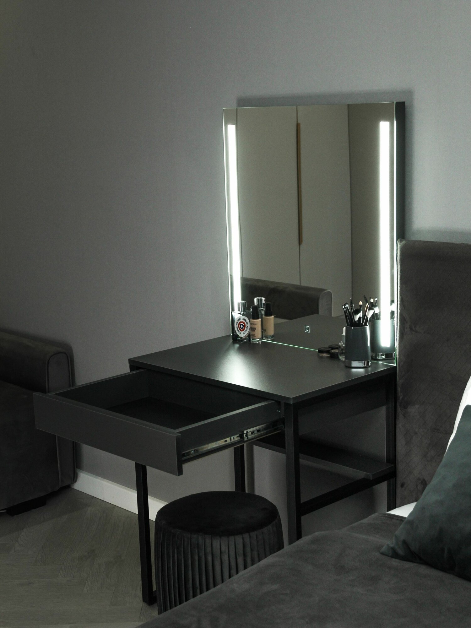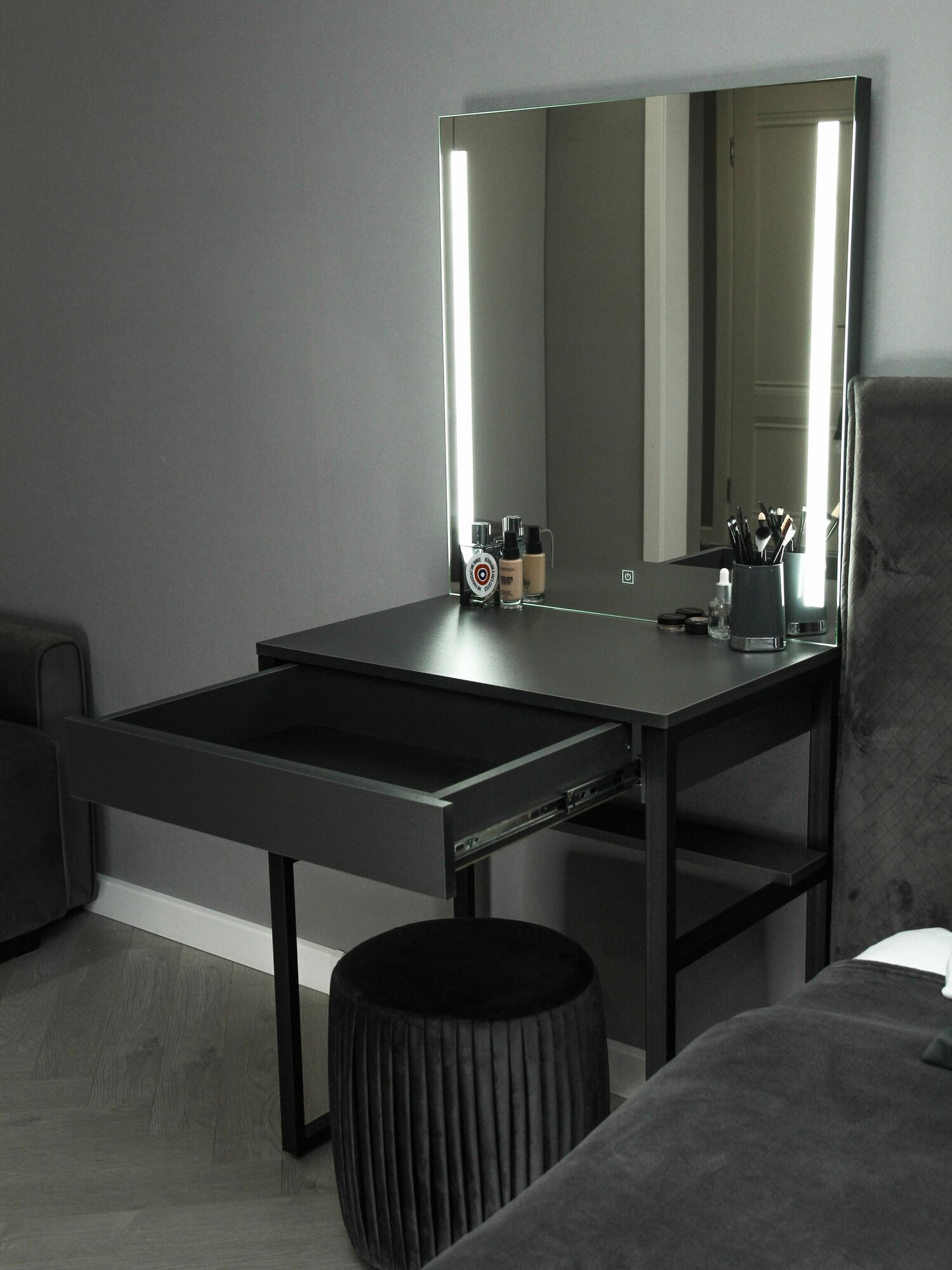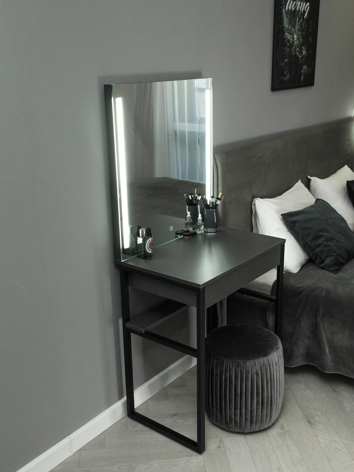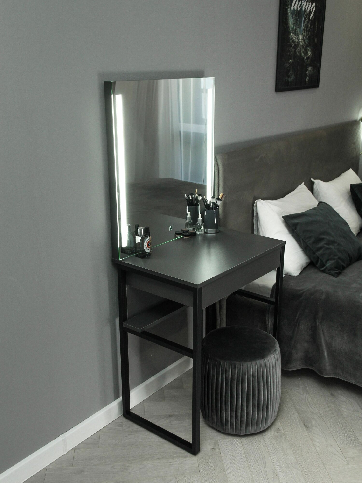 Туалетный столик с ящиком Mini_LED на металлических ножках графит интересное: