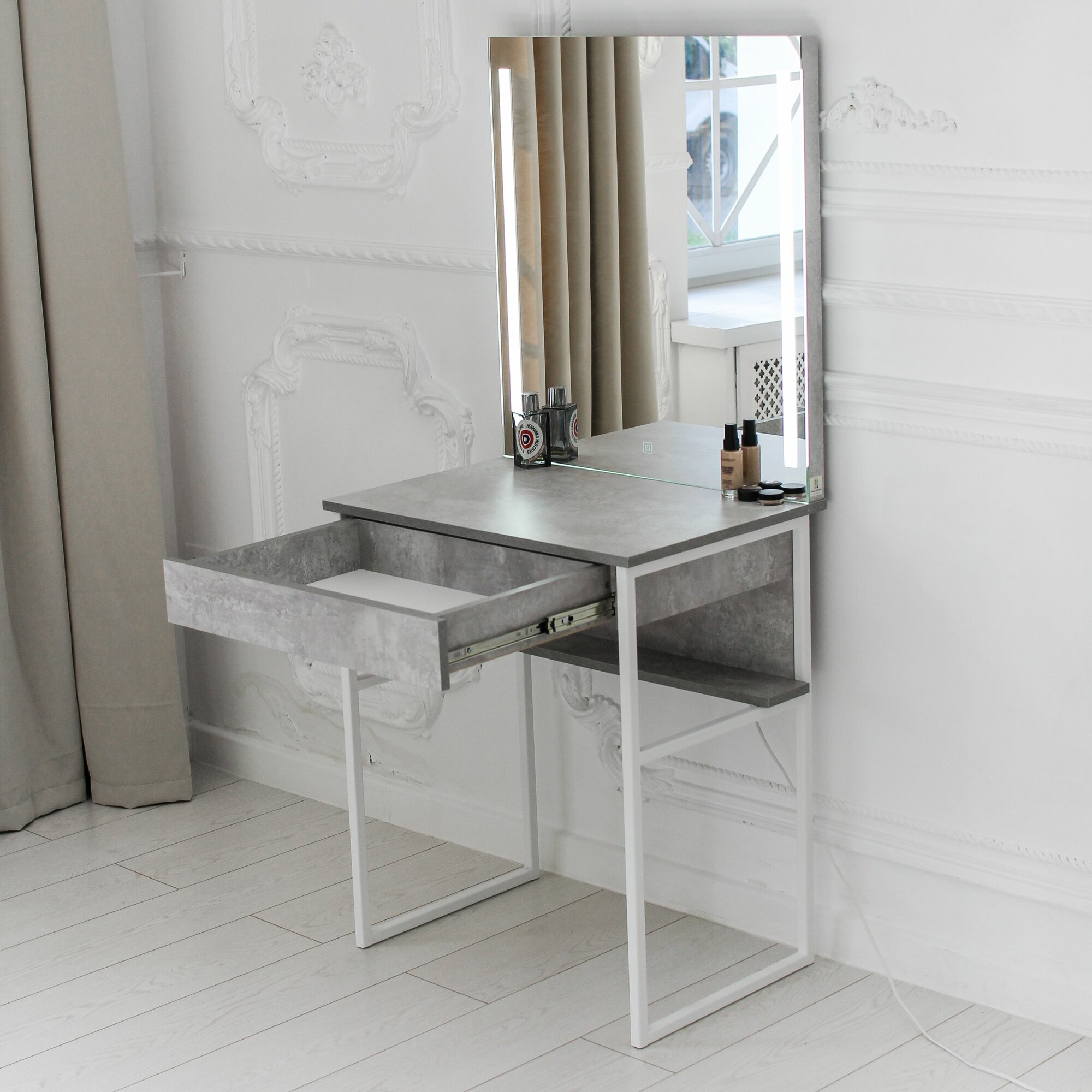 Купить Туалетный столик c ящиком зеркало с LED подсветкой цемент/белый
