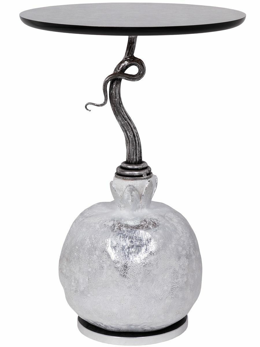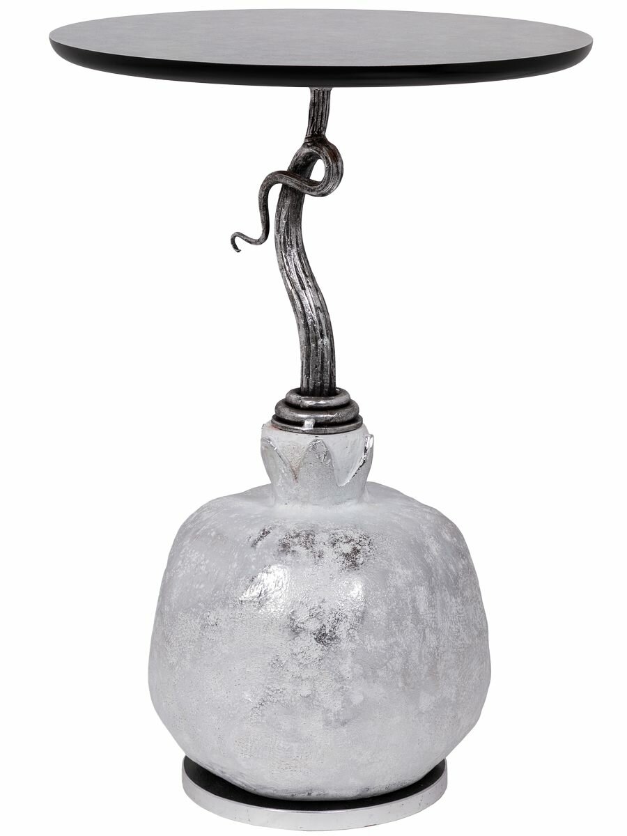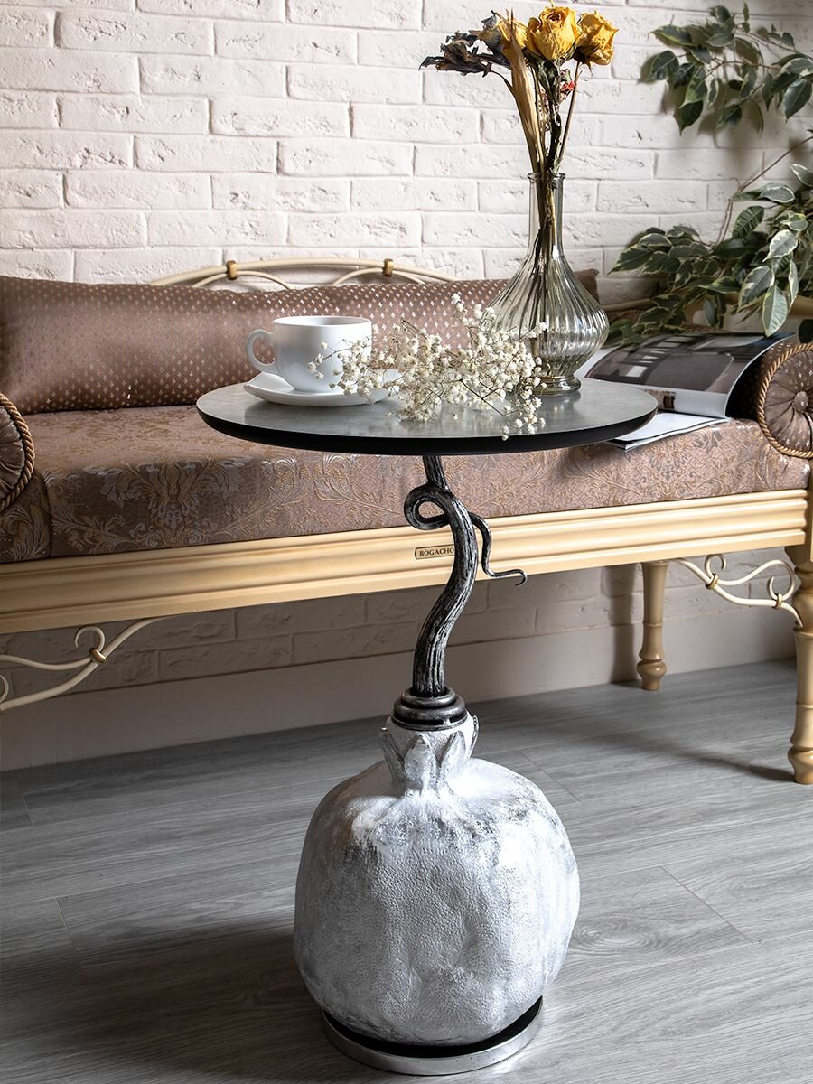 Купить Кофейный круглый столик Bogacho Серебрянный гранат с деревянной столешницей и фигурной ножкой в виде граната