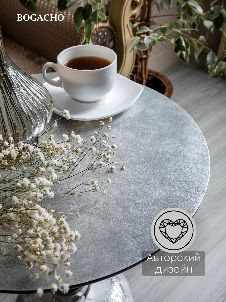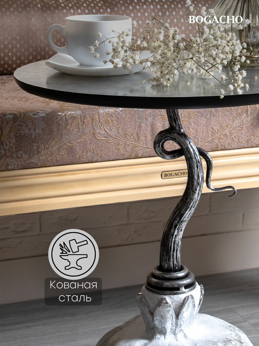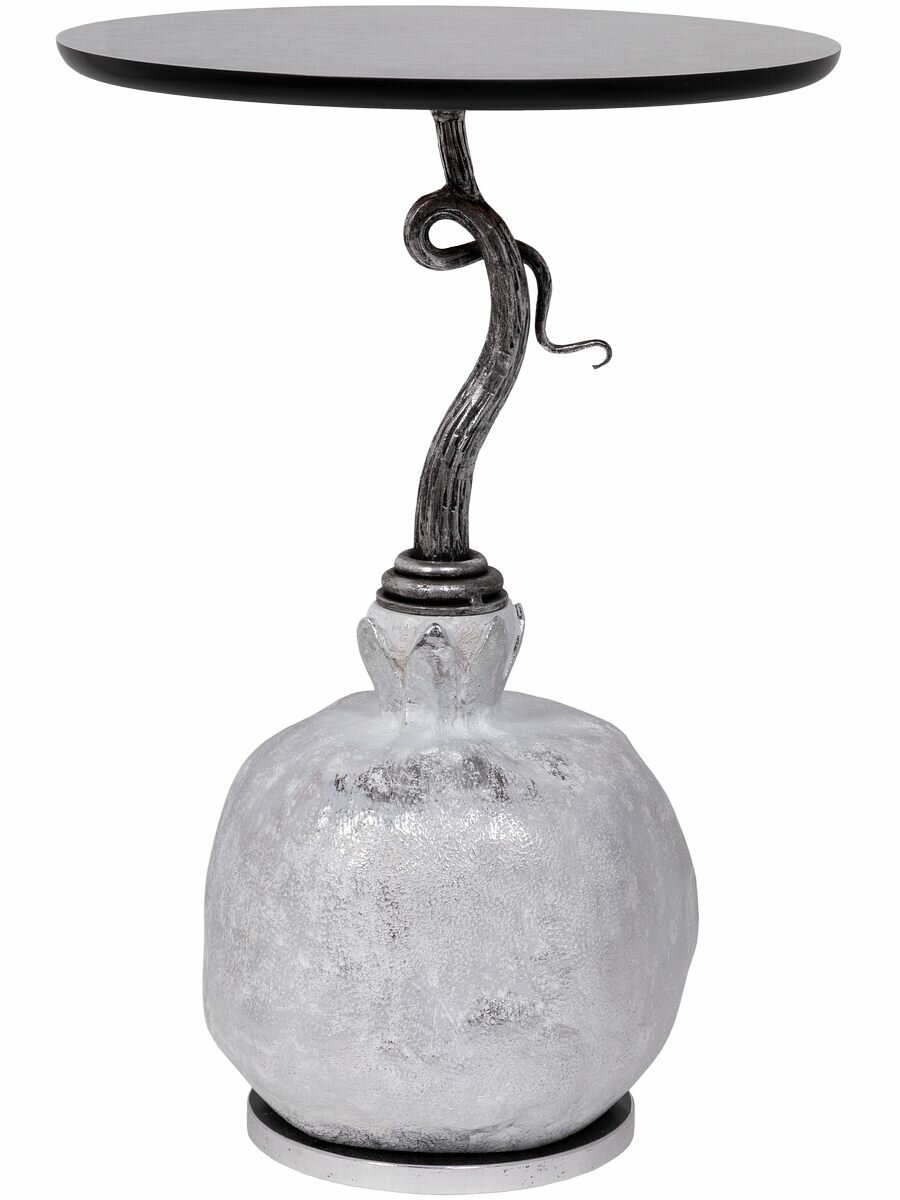 Купить Кофейный круглый столик Bogacho Серебрянный гранат с деревянной столешницей и фигурной ножкой в виде граната