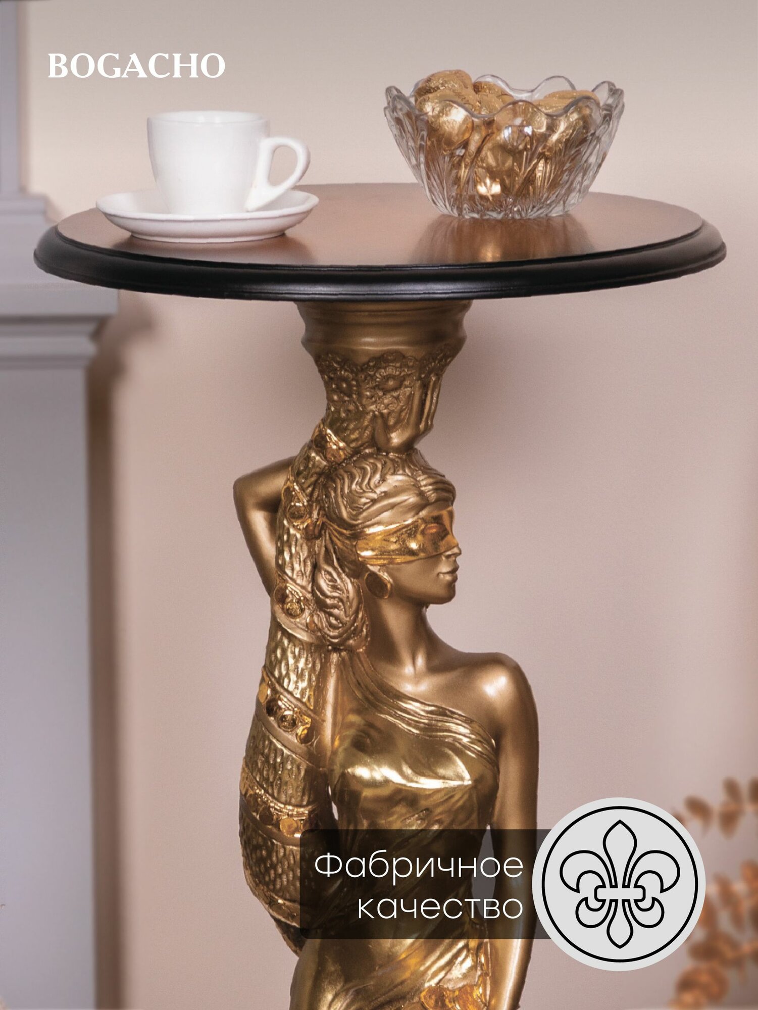 Декоративная подставка BOGACHO Фортуна бронзовая со столешницей диаметром 34 сантиметров коричневой интересное: