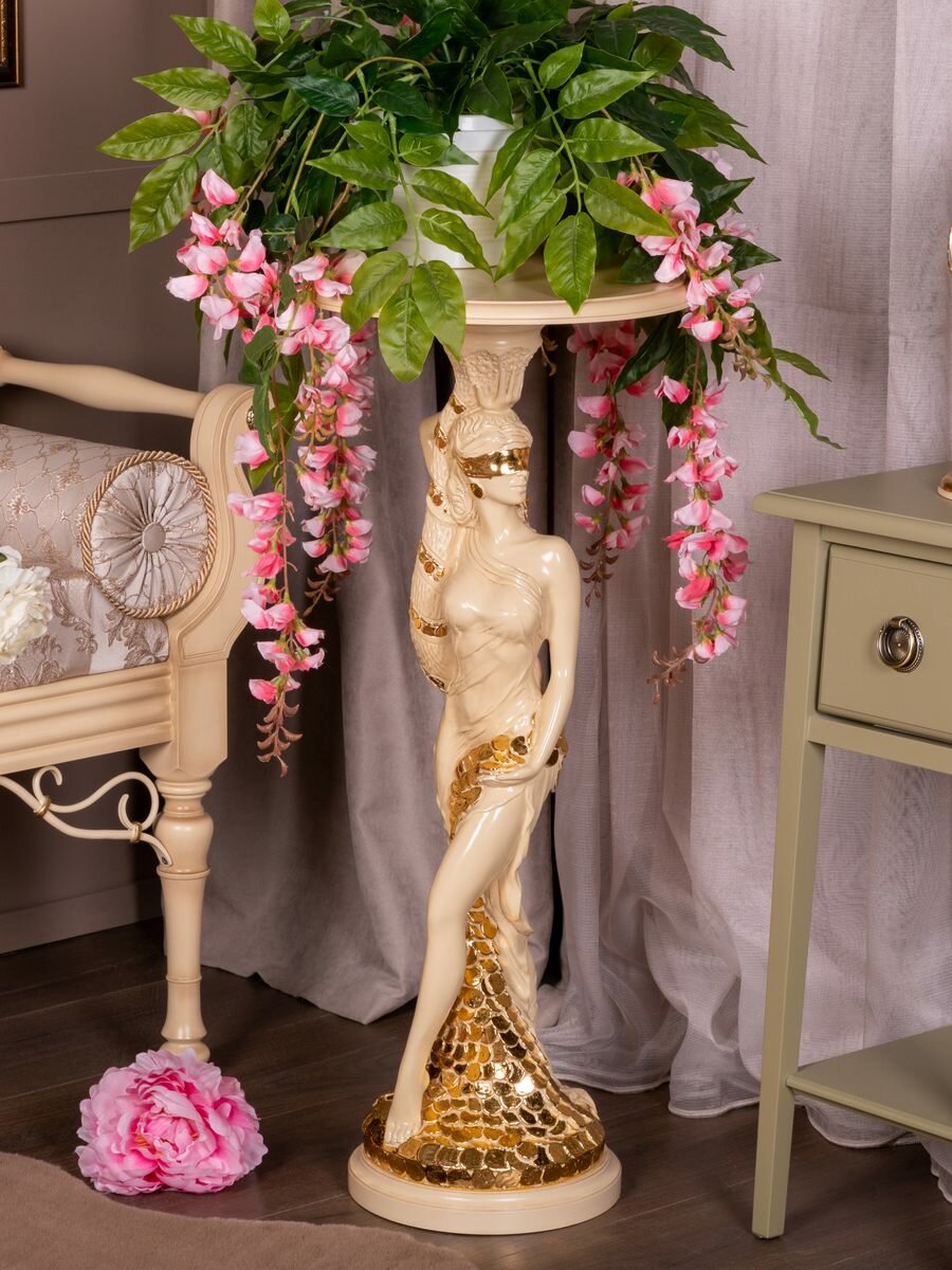 Декоративная подставка BOGACHO Фортуна бежевая со столешницей диаметром 34 сантиметров бежевой интересное: