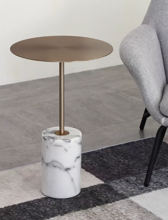 Купить Столик журнальный Fractica Bishop Rock, мраморный каркас, металлическая столешница, круглый, диаметр 40 см