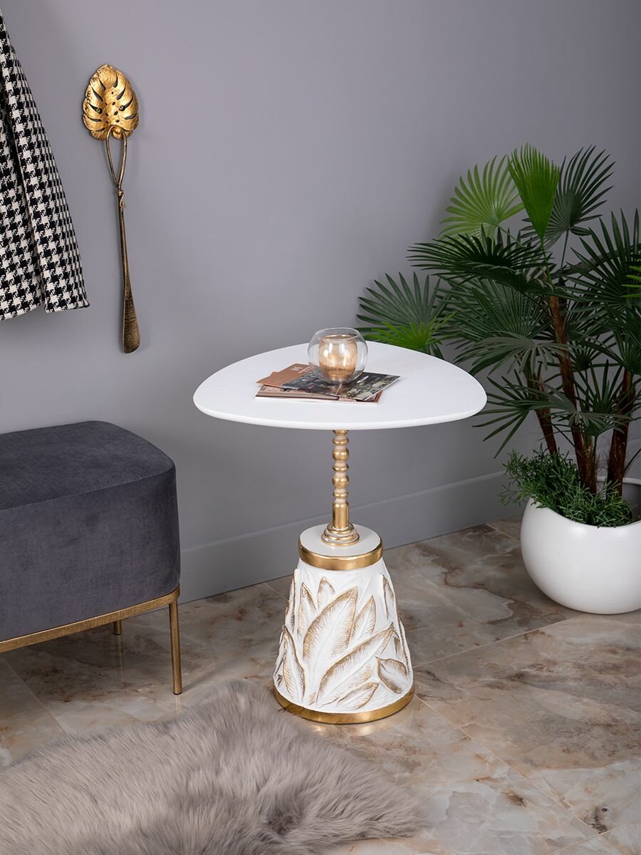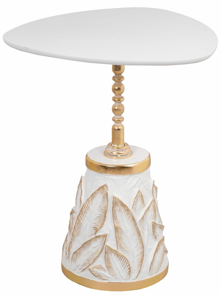 Купить Кофейный треугольный столик Bogacho Арт Leaves с деревянной столешницей и фигурной металлической ножкой