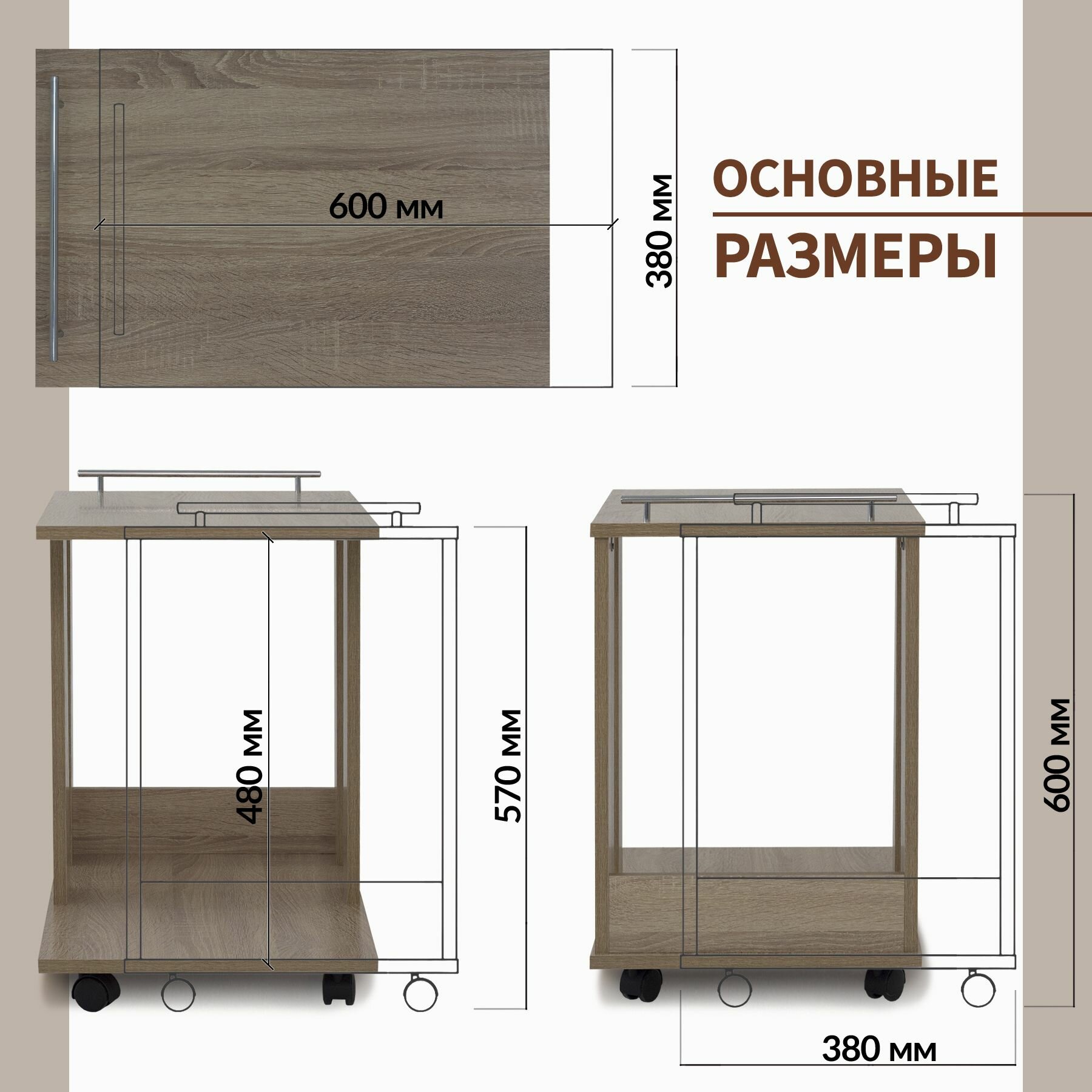 Столик сервировочный Кресло Сибири Corner, ЛДСП, на колесиках