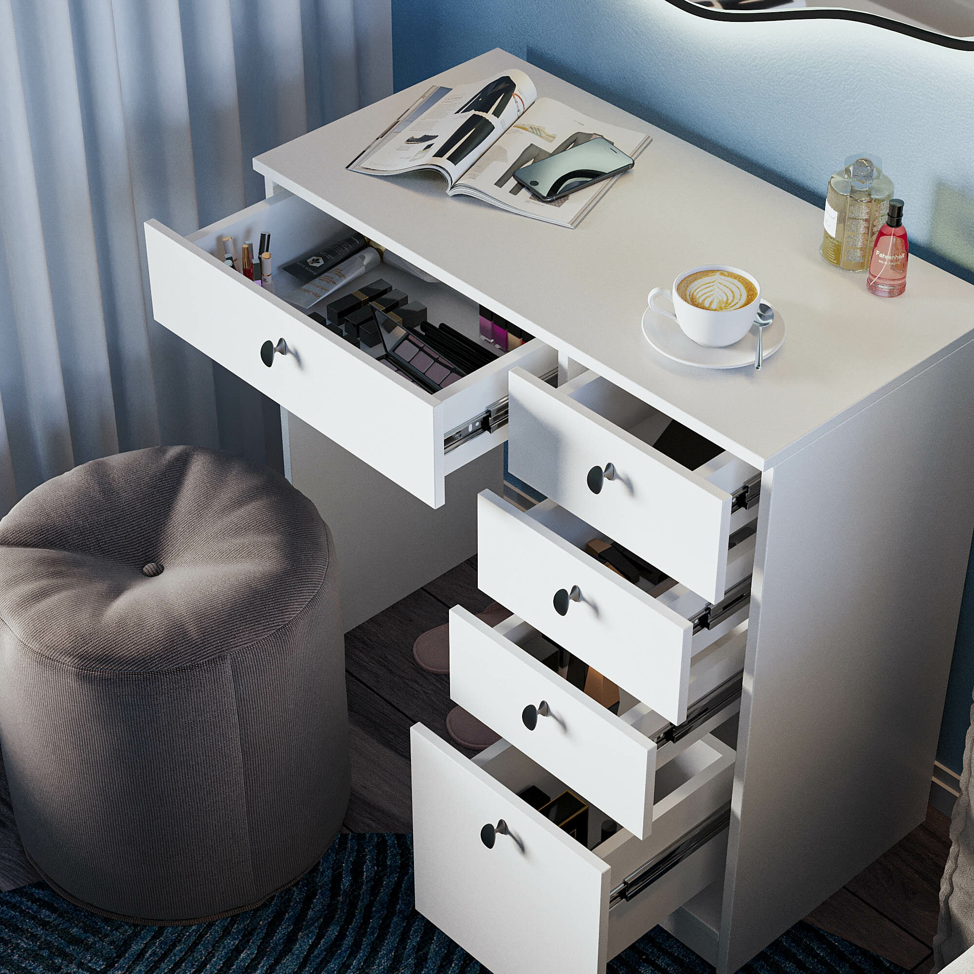 Туалетный столик GRIMSTOL 8-БШ для спальни, белый, 5 ящиков для косметики, 100 см
