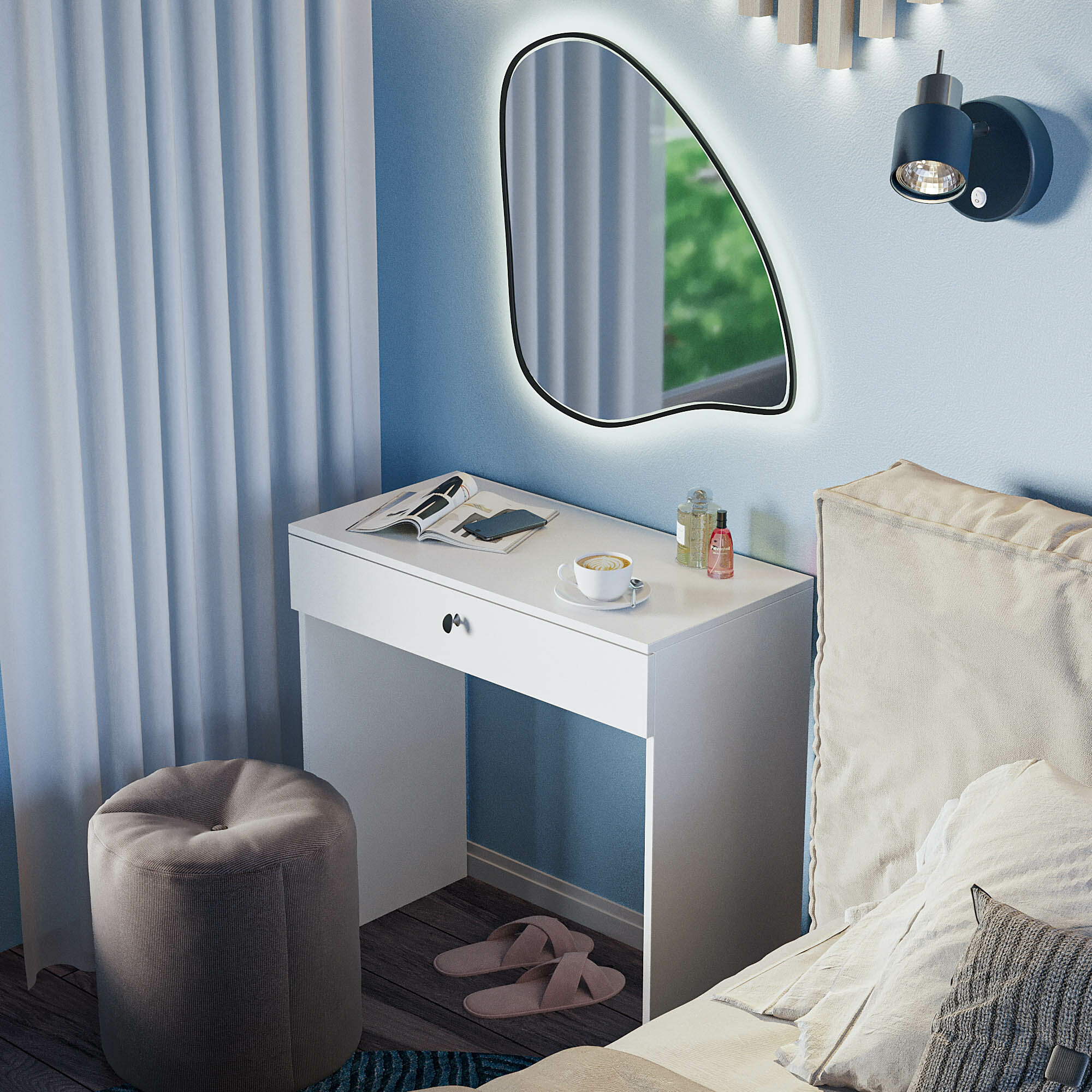 Туалетный столик GRIMSTOL 1-БШ для спальни, белый, ящик для косметики интересное: