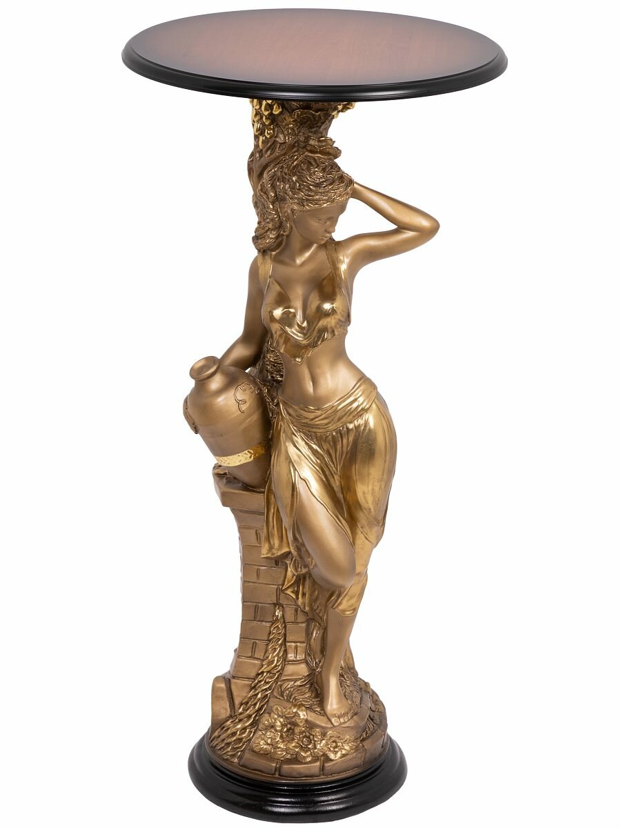 Подставка декоративный столик из литьевого мрамора Bogacho Девушка с кувшином бронзовая со столешницей 34 см цвет: орех