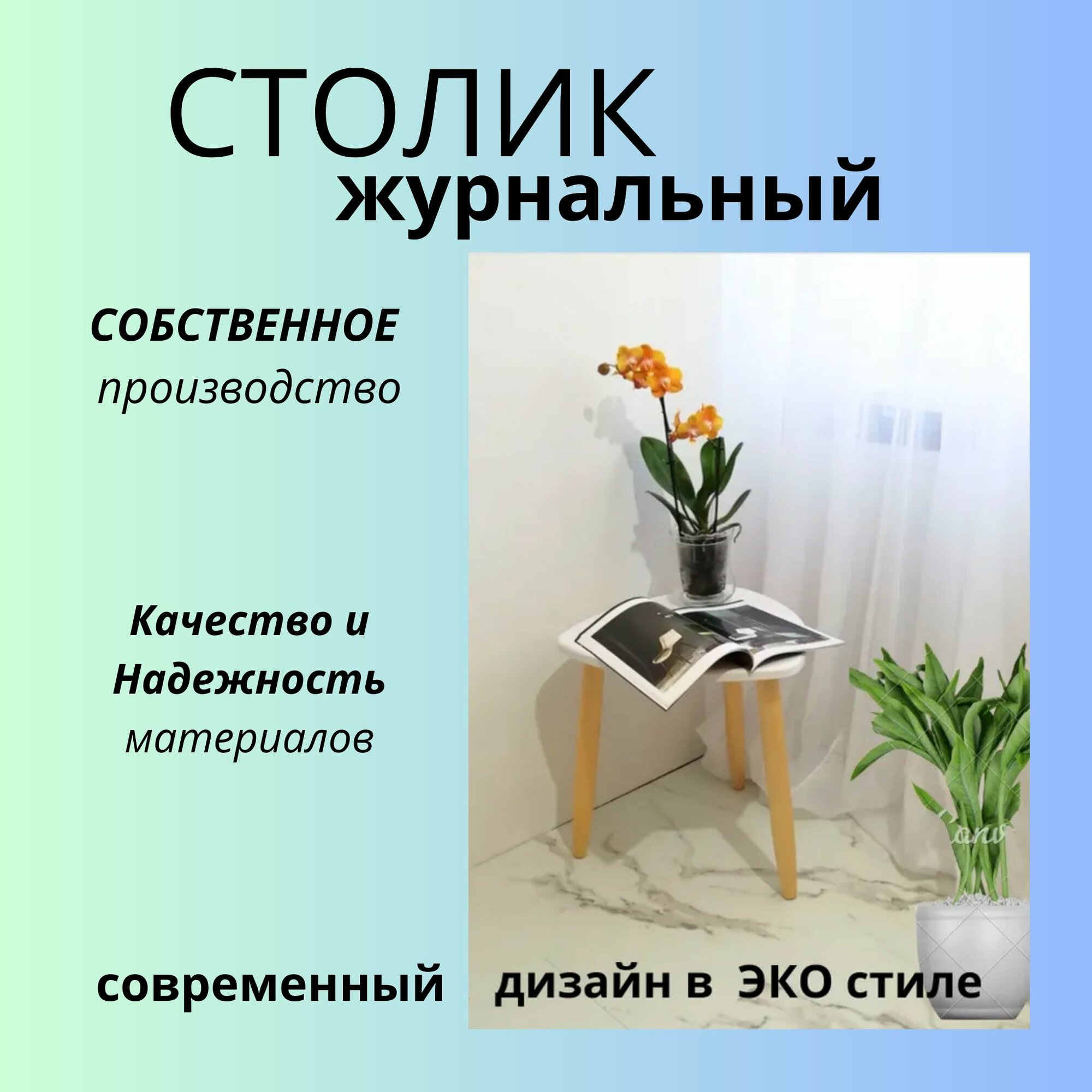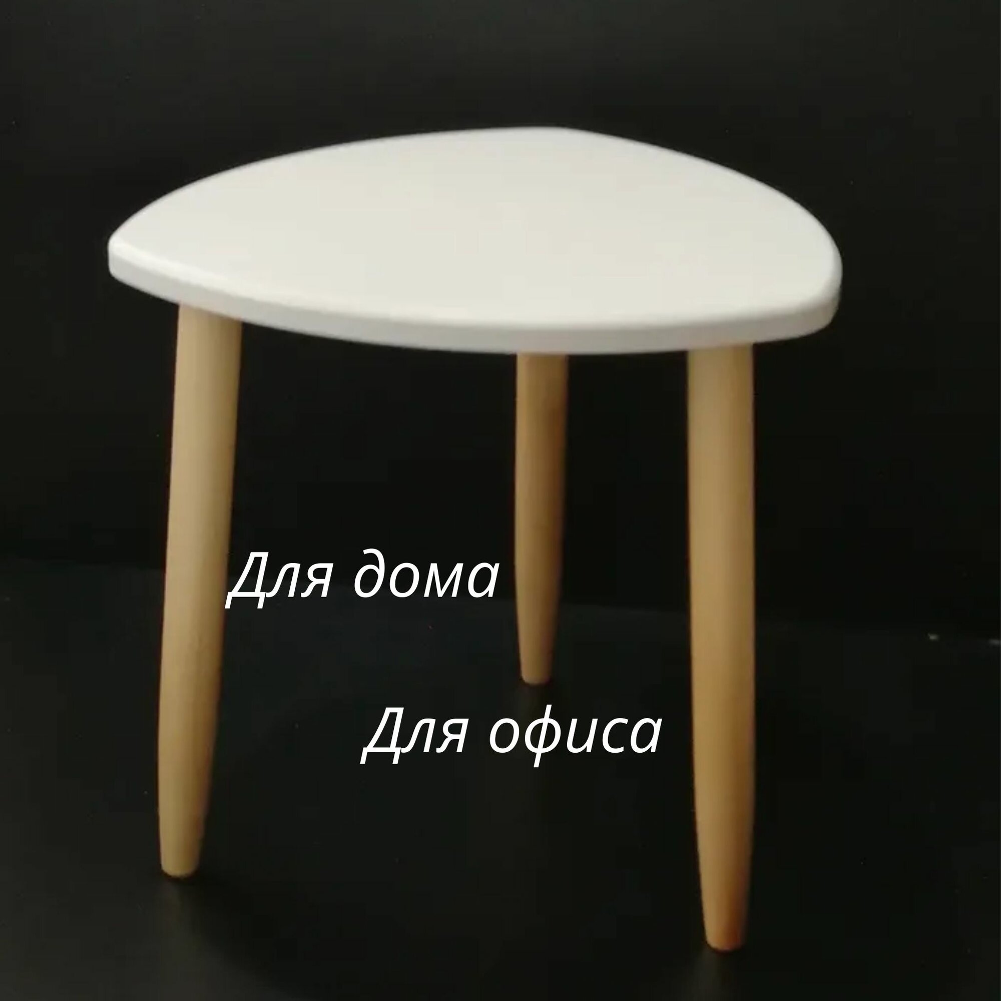 Купить Столик, журнальный треугольный, кофейный, прикроватный, детский, длина сторон 47х47х47см, цвет: белый, ножки лакированные из березы.