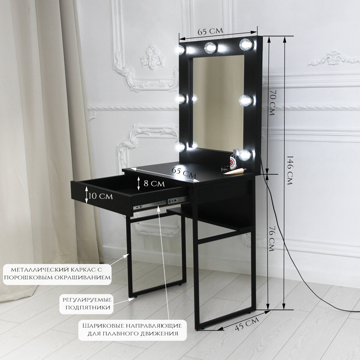 Туалетный столик MiniLoft зеркало в раме с подсветкой черный интересное: