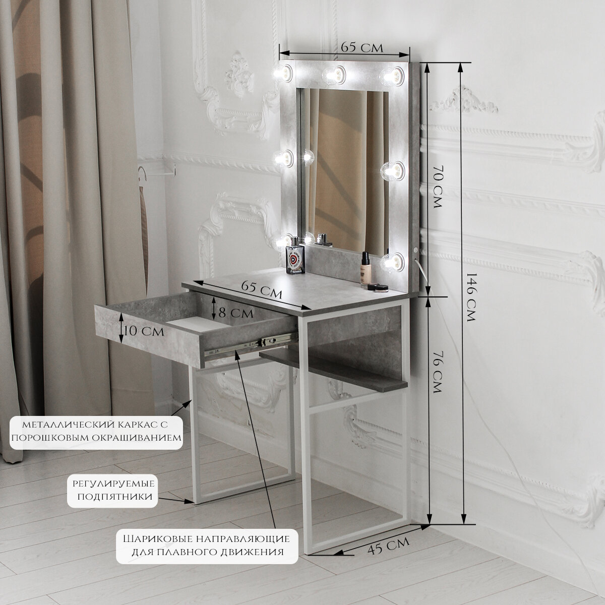 Туалетный столик с ящиком MiniLoft зеркало в раме с подсветкой цемент/белый интересное: