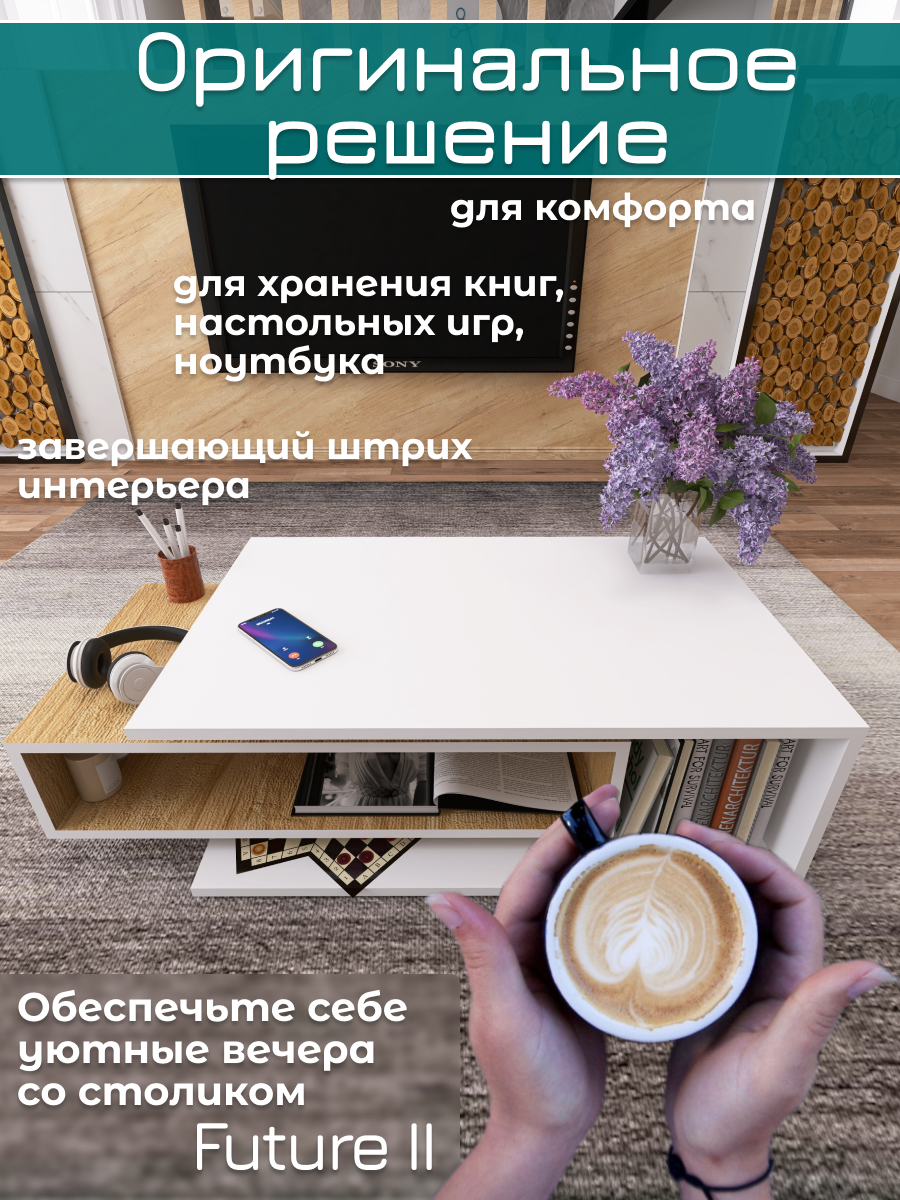 Журнальный стол Future 1, белый/ дуб, столик прикроватный, деревянный лофт, в спальню, в гостиную