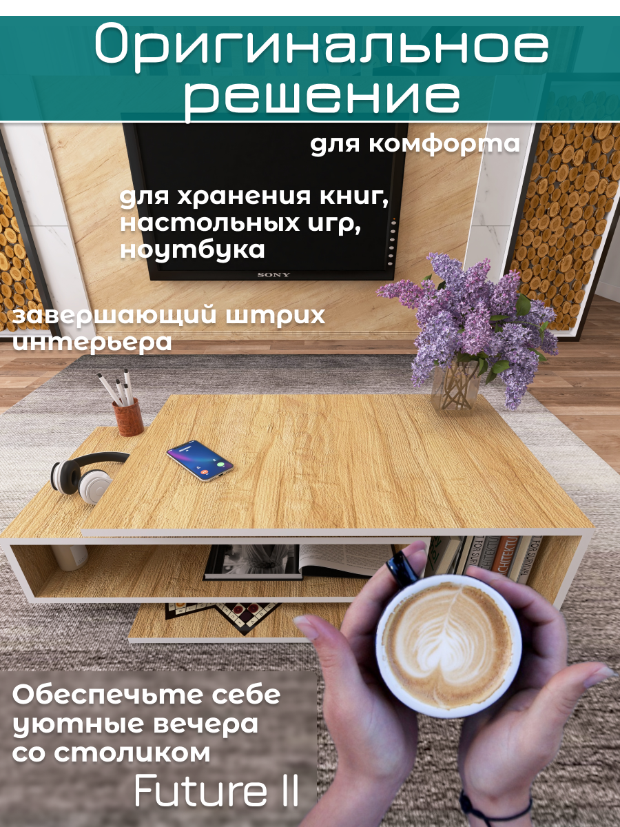 Журнальный стол Future 2, белый/дуб, столик прикроватный, деревянный лофт, в спальню, в гостиную