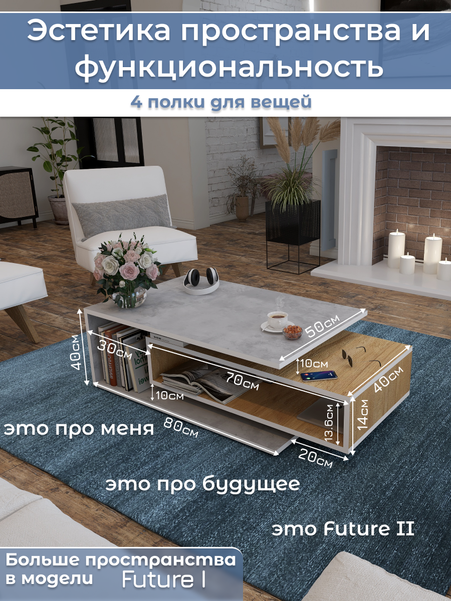 СохранитьЖурнальный стол Future 2, бетон/дуб, столик прикроватный, деревянный лофт, в спальню, в гостиную интересное: