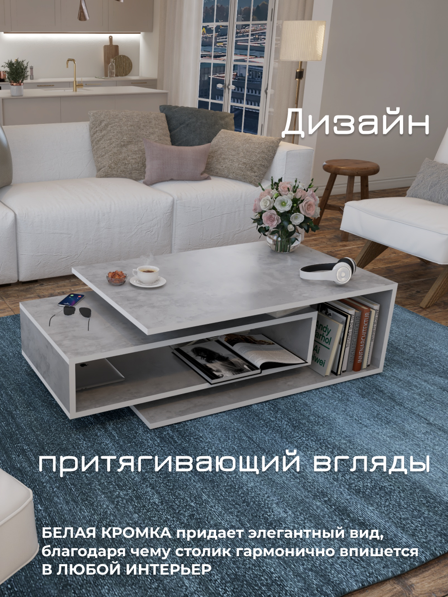 Журнальный стол Smart, белый/бетон, столик прикроватный, деревянный лофт, в спальню, в гостиную