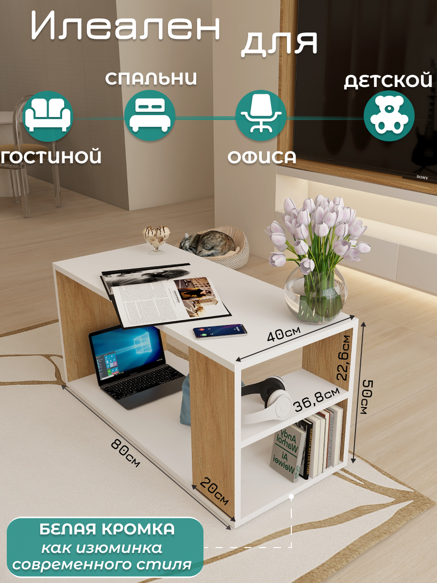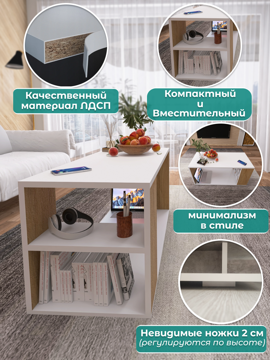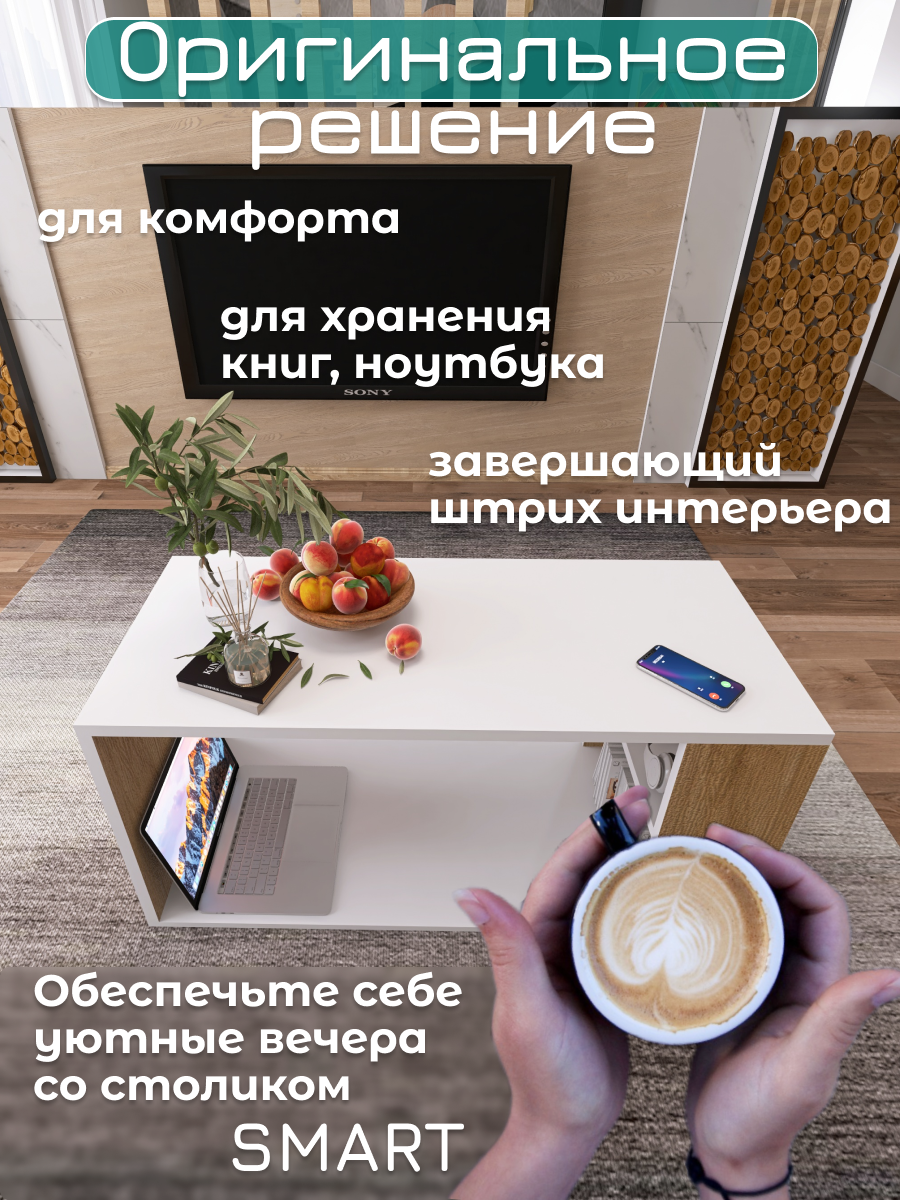 СохранитьЖурнальный стол Smart, белый/дуб, столик прикроватный, деревянный лофт, в спальню, в гостиную интересное: