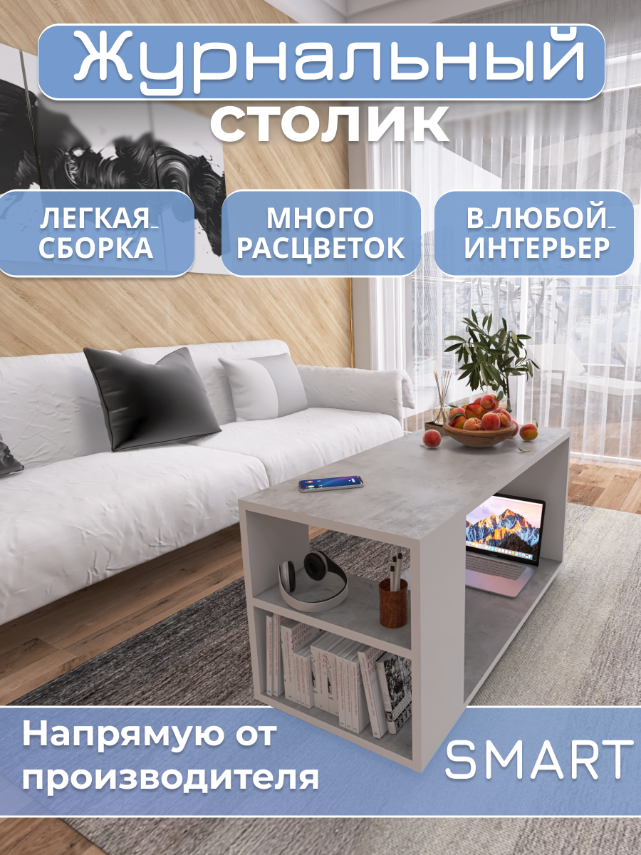 Журнальный стол Smart, белый/бетон, столик прикроватный, деревянный лофт, в спальню, в гостиную