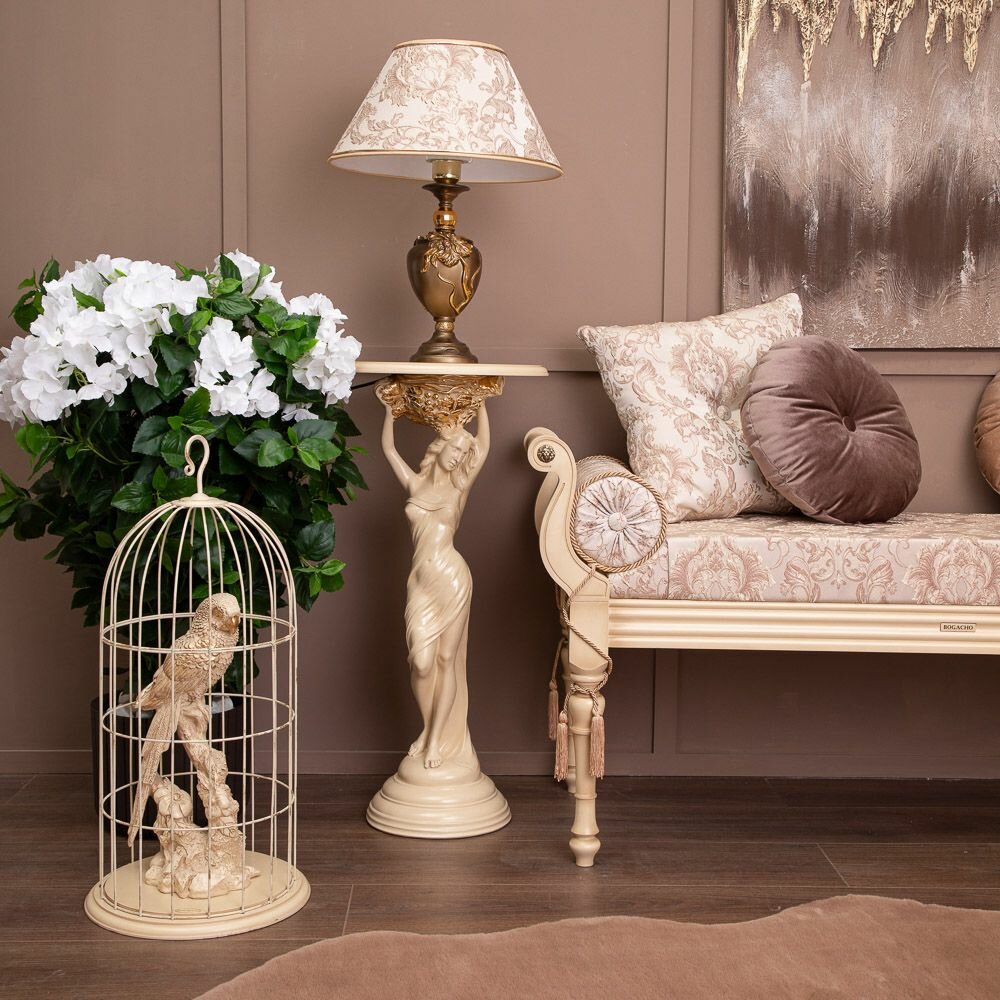 Купить Декоративная подставка BOGACHO Валерия бежевая со столешницей диаметром 34 сантиметров бежевой