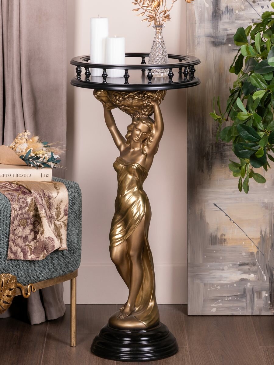 Купить Декоративная подставка BOGACHO Валерия бронзовая со столешницей диаметром 34 сантиметров с бортиками