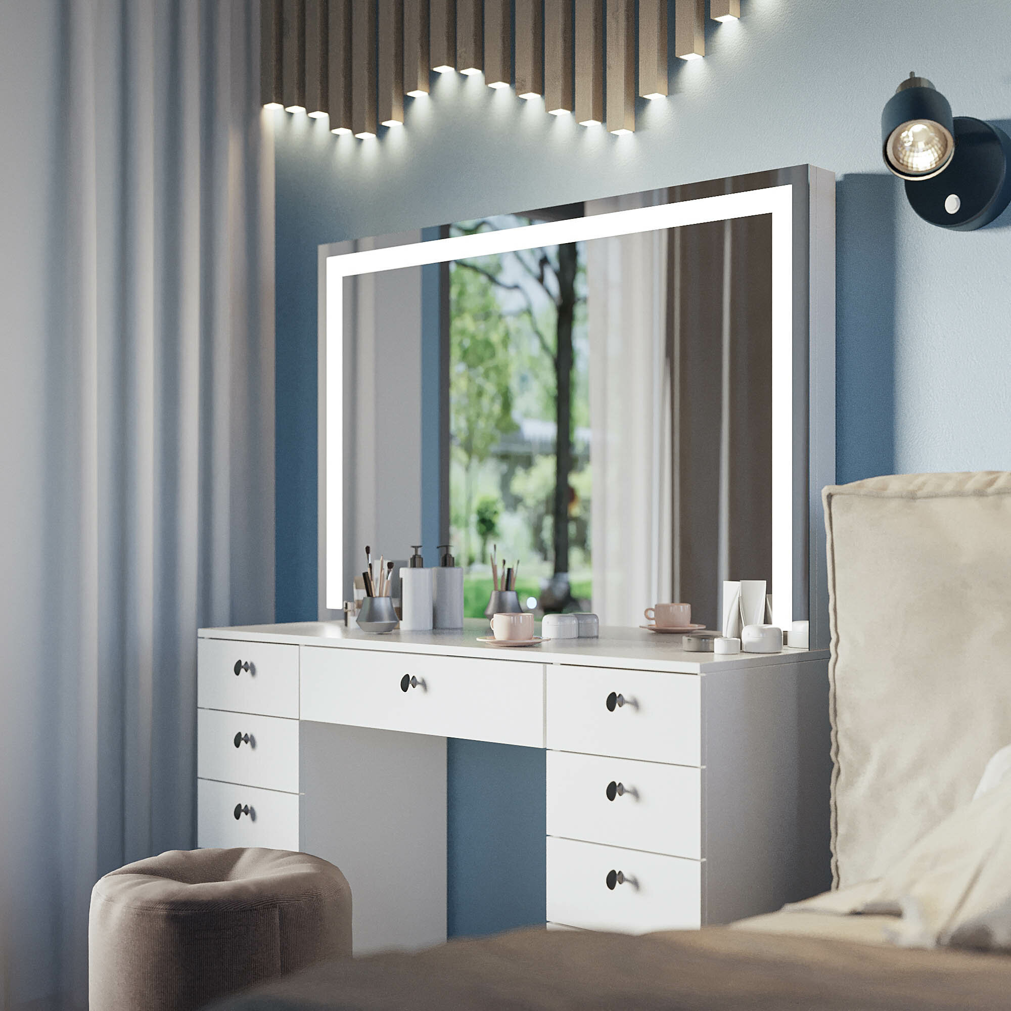 Купить Туалетный столик GRIMSTOL 4Д120-БШ, гримёрное зеркало, LED-подсветка, белый