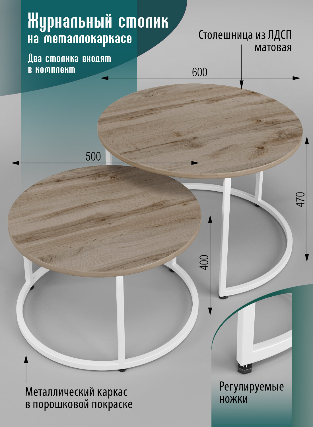 СохранитьКомплект журнальных столов 2 шт. Разборные. Дуб/белый интересное:
