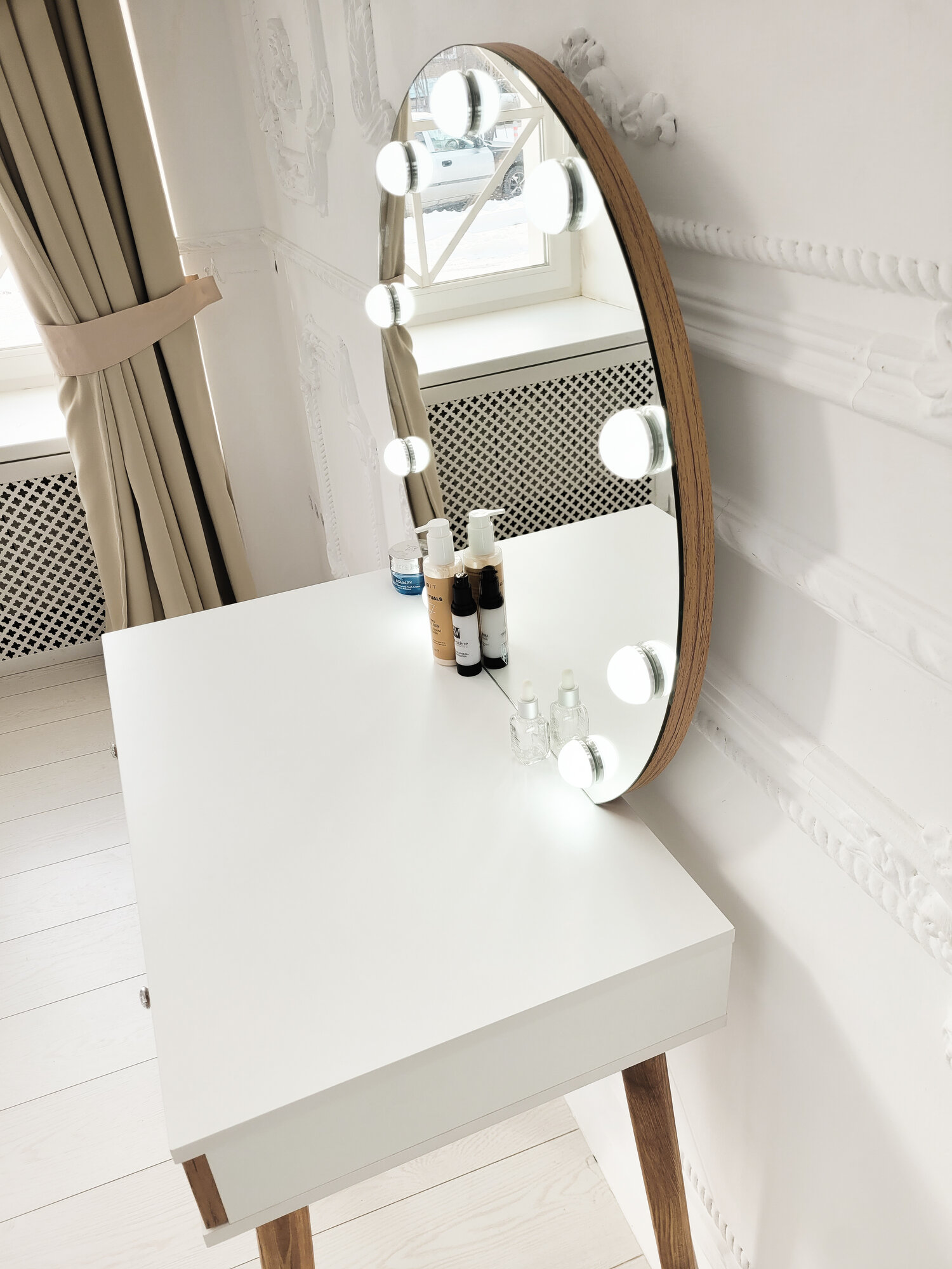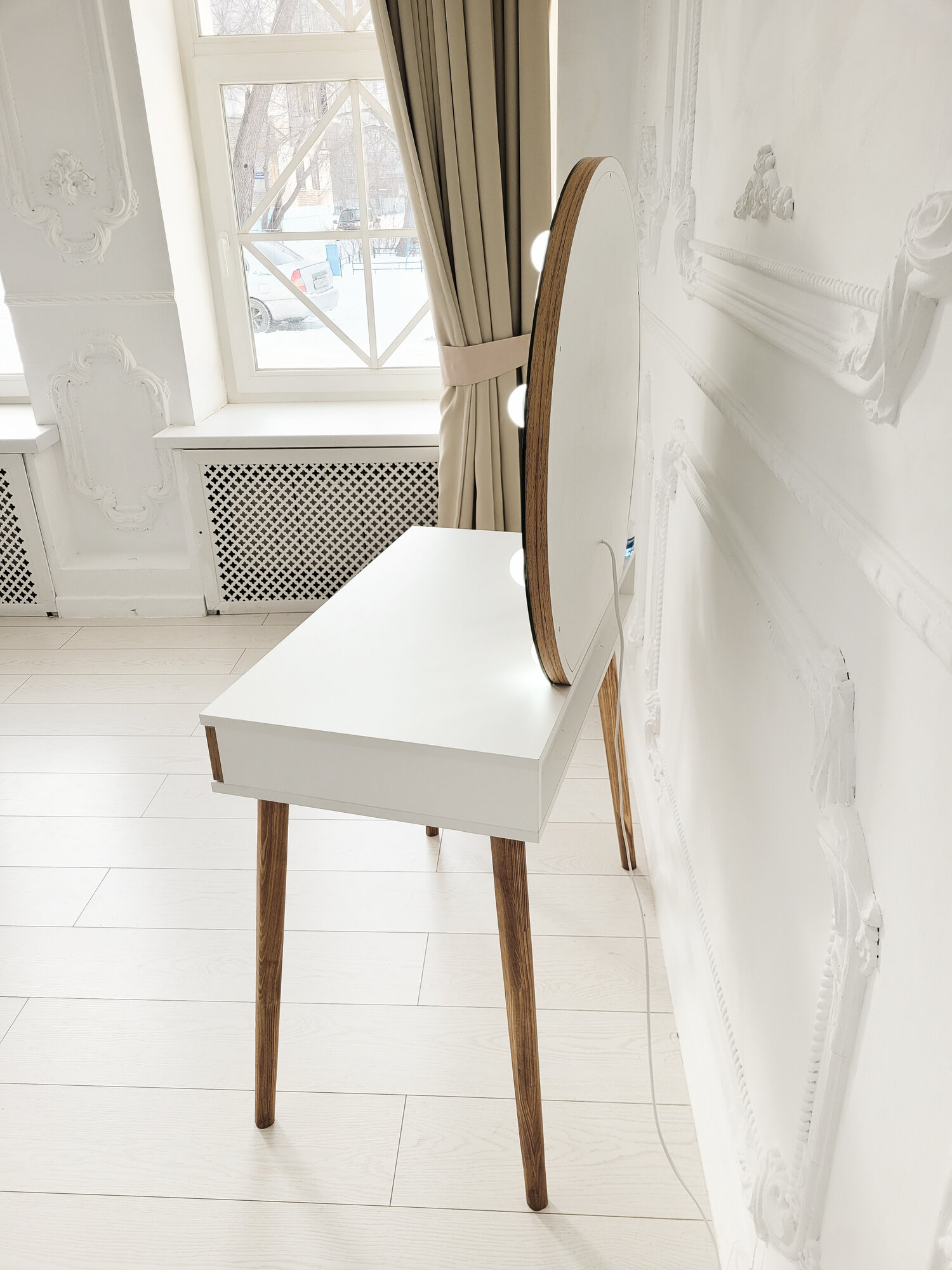 СохранитьТуалетный гримерный столик с ящиком и круглым зеркалом с Led лампами (Wh+Vot65) интересное: