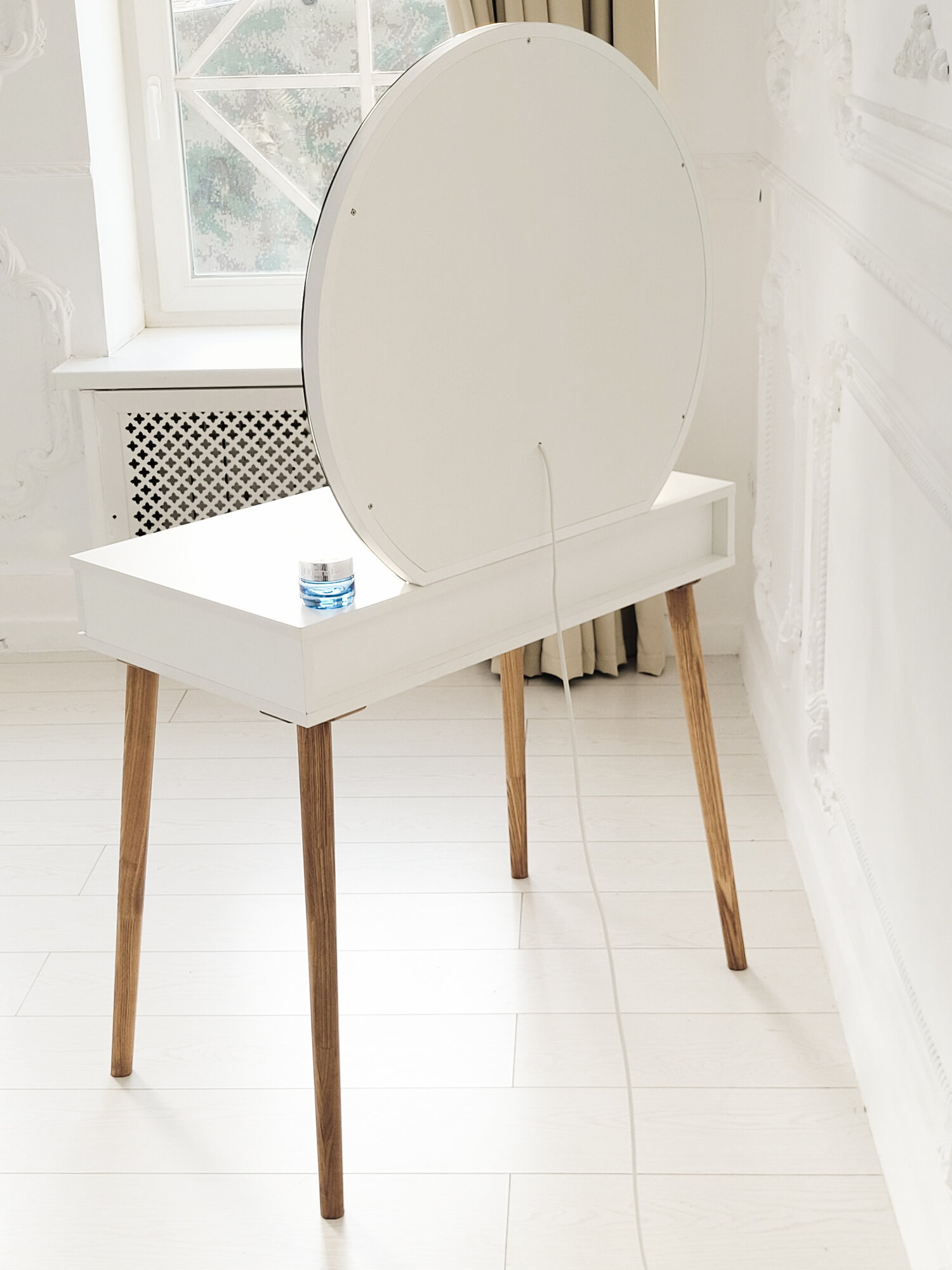 СохранитьТуалетный гримерный столик с ящиком и круглым зеркалом с Led лампами (White65) интересное:
