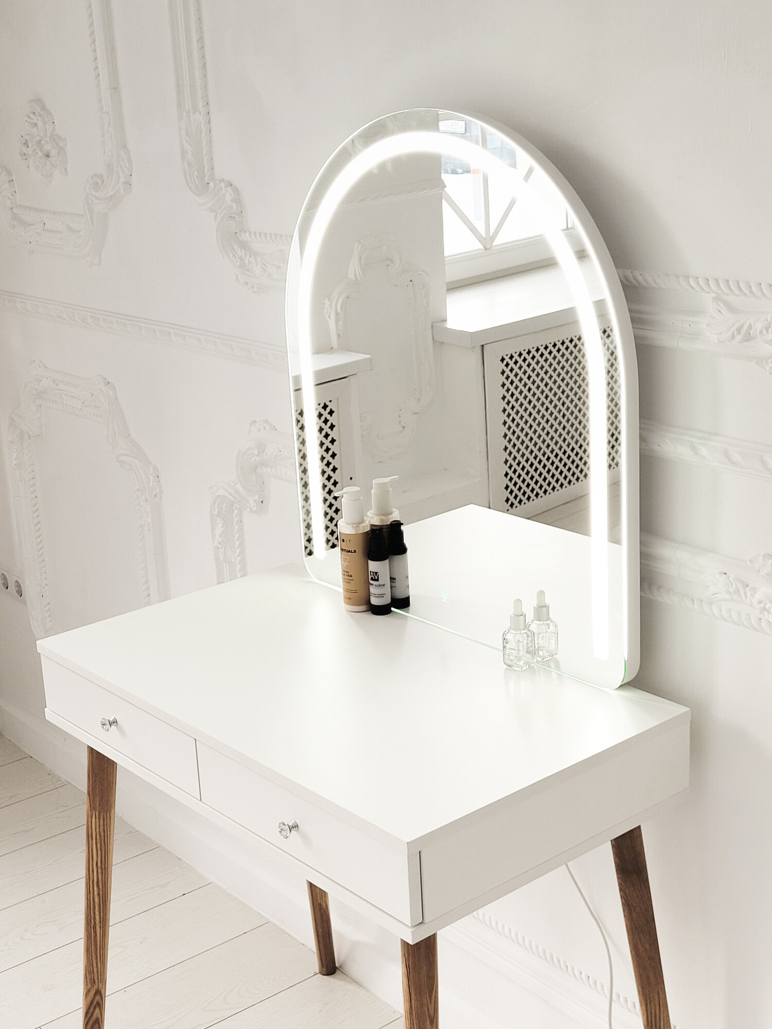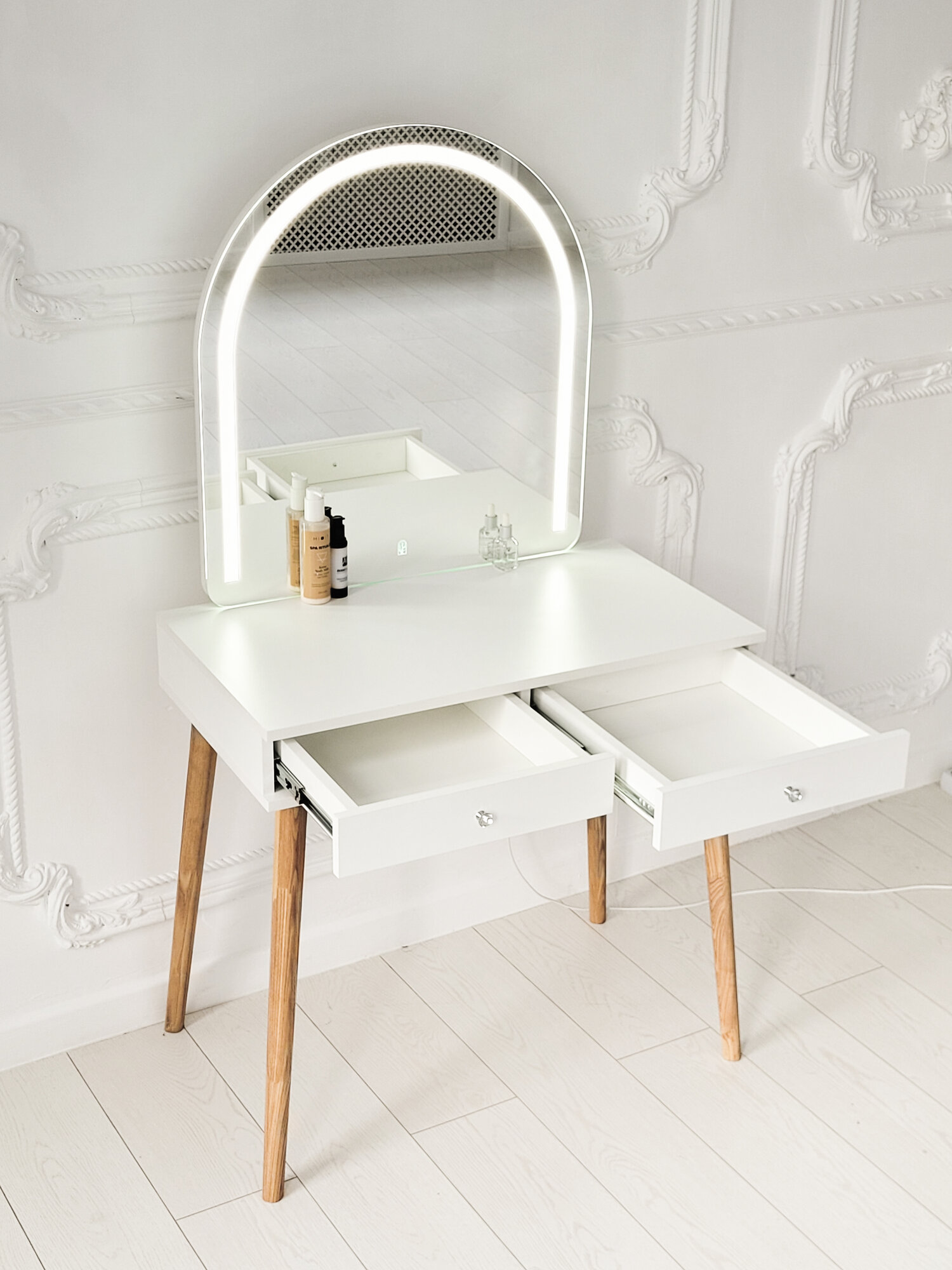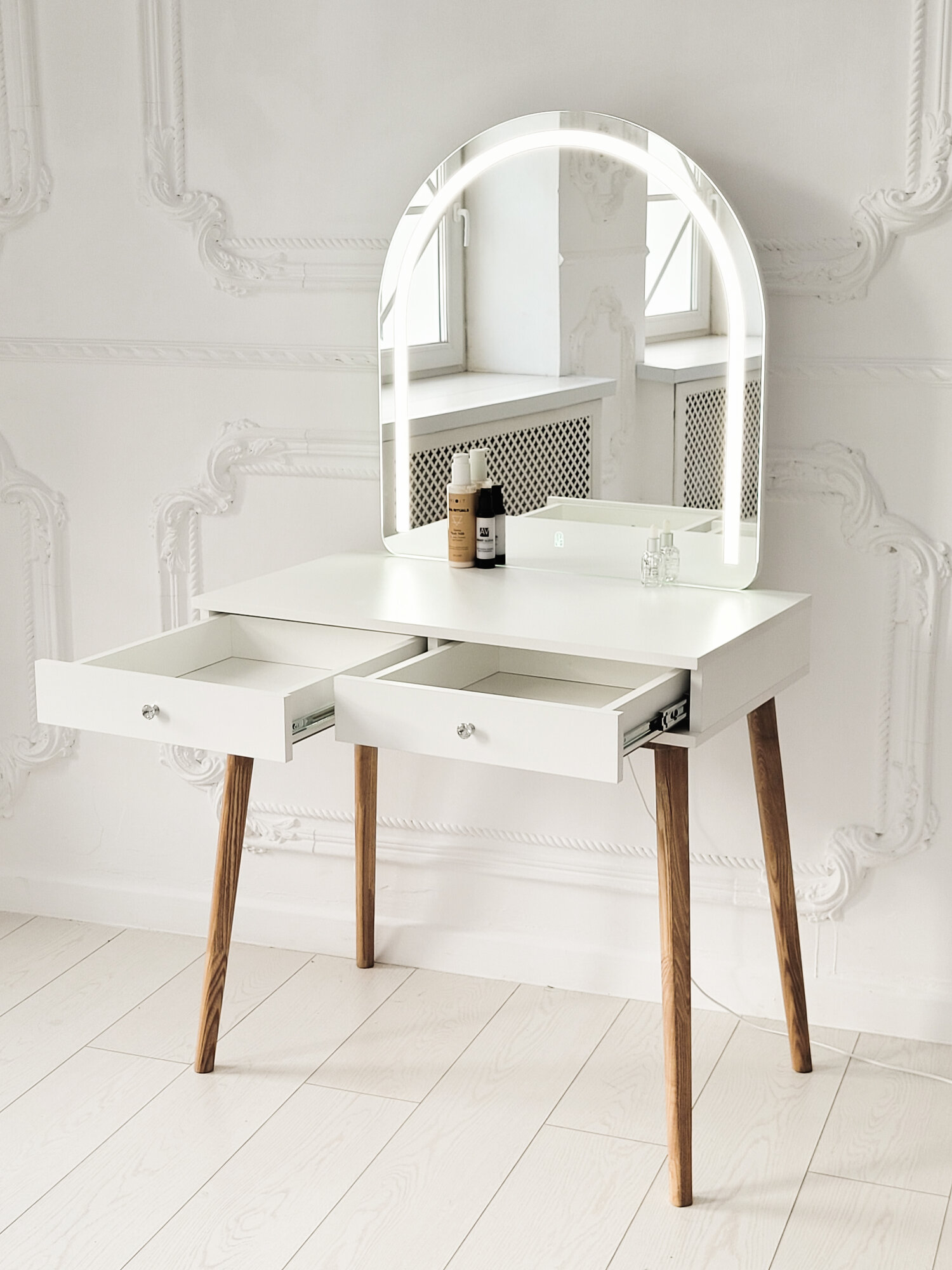 Макияжный столик с 2-я ящиками и зеркало-арка с Led подсветкой Белый