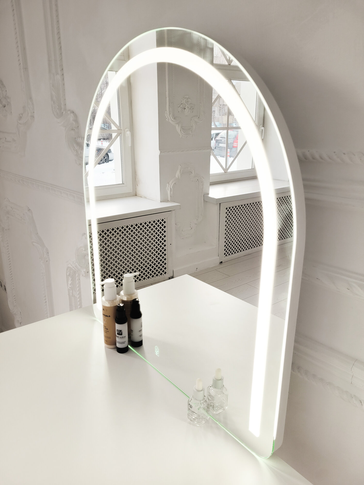 Купить Туалетный гримерный столик с ящиком и зеркалом-арка с Led подсветкой Белый