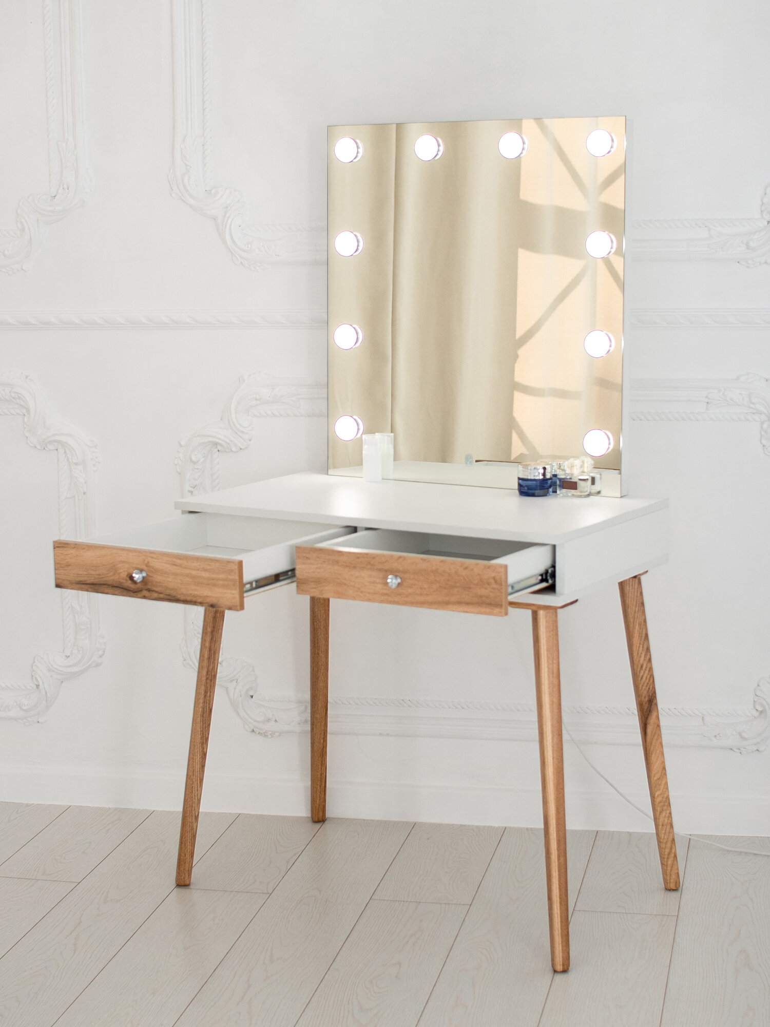 Туалетный гримерный столик с 2-я ящиками и зеркалом с Led подсветкой (White-белый)