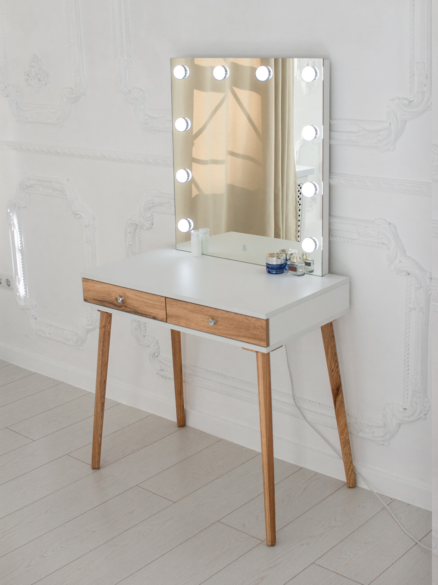 Гримерный столик с ящиком и зеркалом с Led подсветкой(White+Votan(белый+вотан)